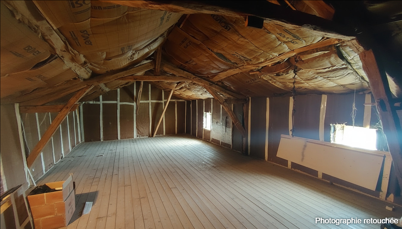 À l'étage, un bel escalier en bois massif dessert deux grandes chambres (15 et 16 m2) ainsi qu'une salle de bain sur le même niveau. Le grenier, d'une surface d'environ 45 m2, est entièrement aménageable, laissant libre cours à vos projets.