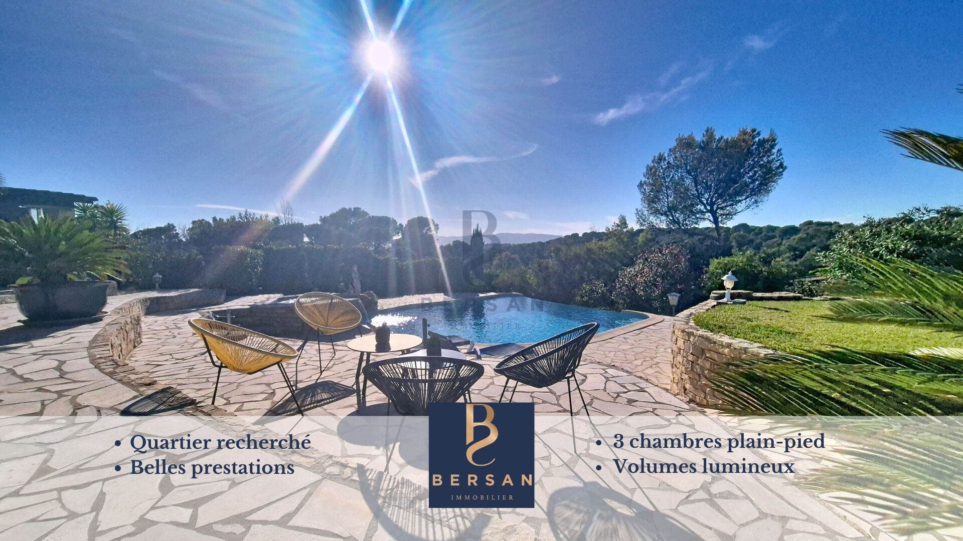 Votre agence BERSAN Immobilier vous propose cette superbe villa idéalement située à proximité des commerces, golfs et plages. Cette propriété vous séduira par son architecture élégante, ses volumes lumineux et ses prestations, nichée dans un environnement calme et verdoyant avec une vue panoramique à couper le souffle.