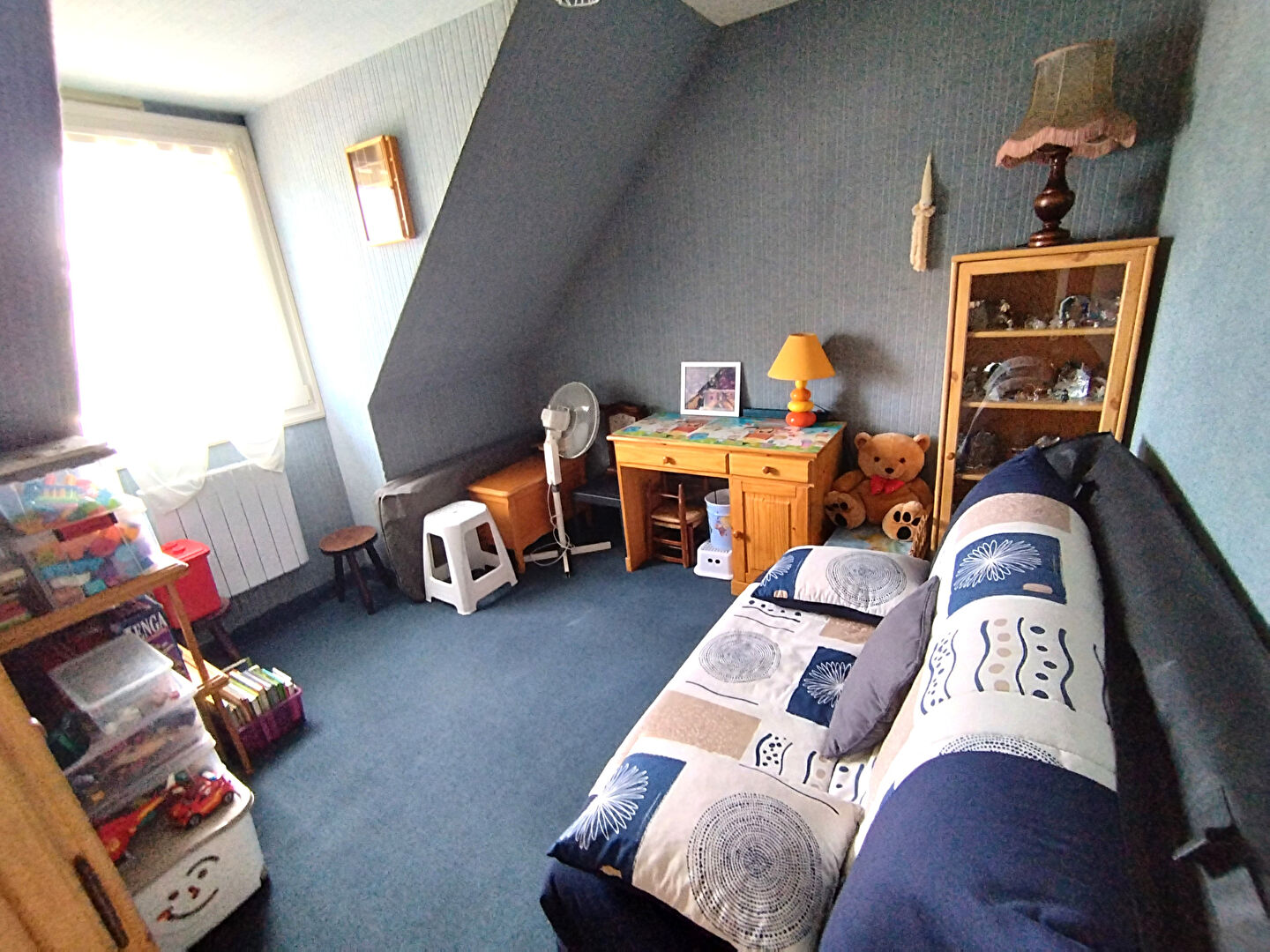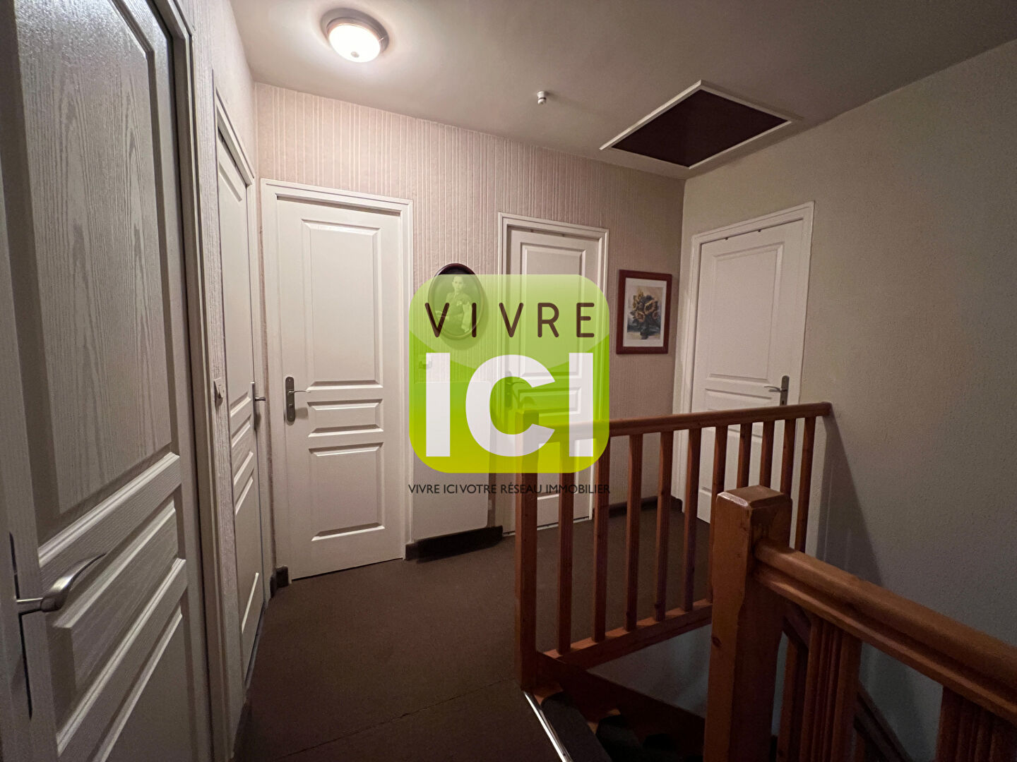 À l'étage, le palier dessert trois chambres confortables, une salle de bains et un second WC indépendant, parfait pour la vie de famille.