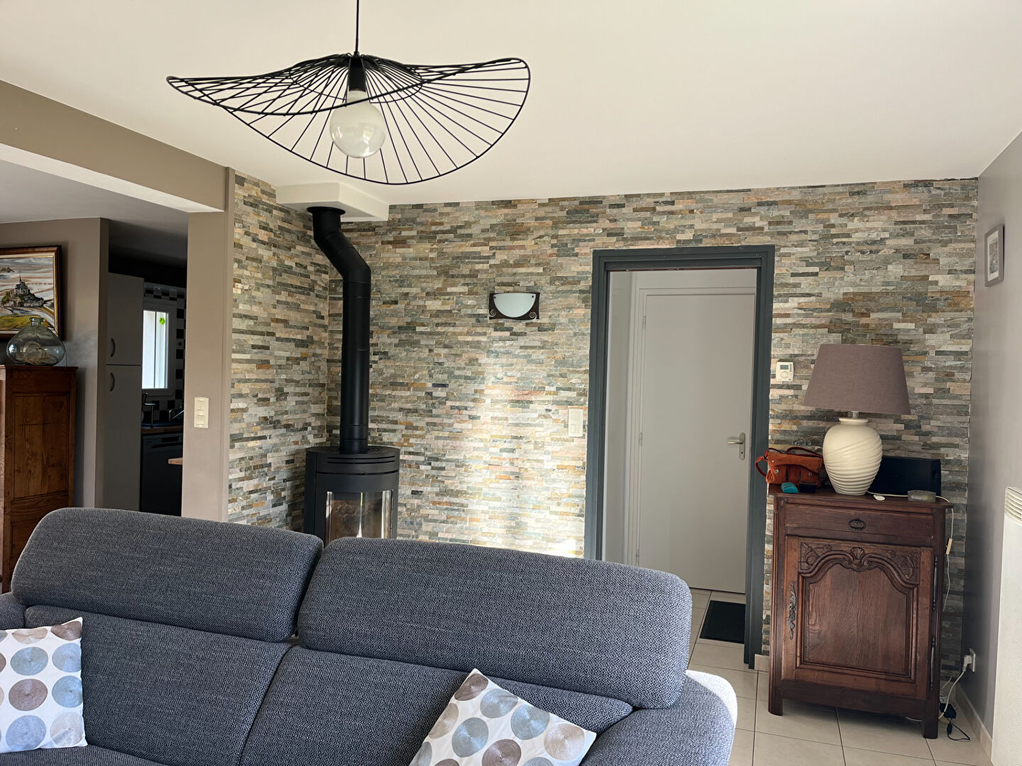 - Au rez-de-chaussée : une entrée avec placard, un beau salon séjour agrémenté d'un poêle à bois, une cuisine ouverte aménagée/équipée (four, plaque de cuisson, hotte, lave-vaisselle), un cellier, des sanitaires avec lave mains.
