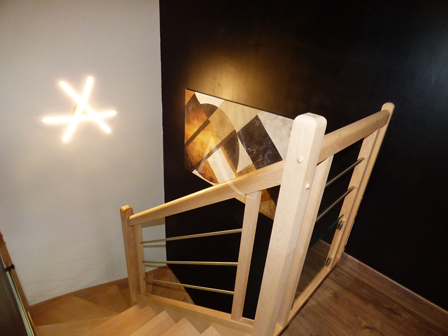Elle se compose au rez-de-chaussée d'un grand espace salon/séjour cuisine E/A lumineux, une chambre, une salle d'eau, un cellier, une cave voutée, une grange de 70 m². Possibilité d'une deuxième chambre au rez-de-chaussée.