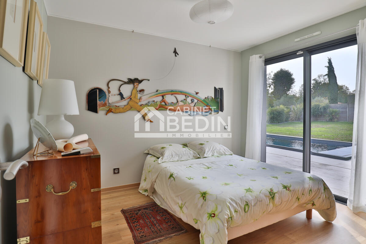 Exclusivité CABINET BEDIN - Villa familiale contemporaine proche Langon. À seulement quelques minutes de Langon, de sa gare et de l?A62, cette villa contemporaine de 2017 offre à votre famille un cadre de vie à la fois calme, pratique et sécurisé. Nichée dans un jardin verdoyant de plus de 7 000 m², elle conjugue modernité, confort et sérénité, tout en restant proche des écoles, commerces et équipements sportifs de Fargues.
