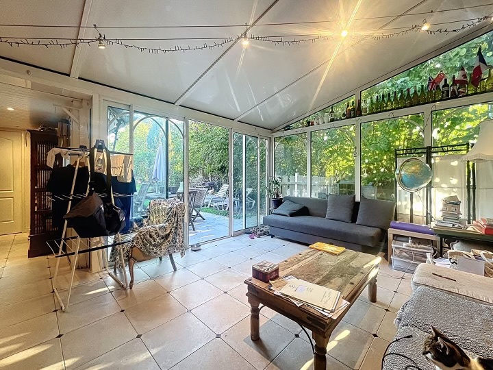 Elle se compose notamment de 4 chambres, d'une véranda chauffée donnant sur un jardin arboré de plus de 600 m2, véritable havre de paix en centre-ville.