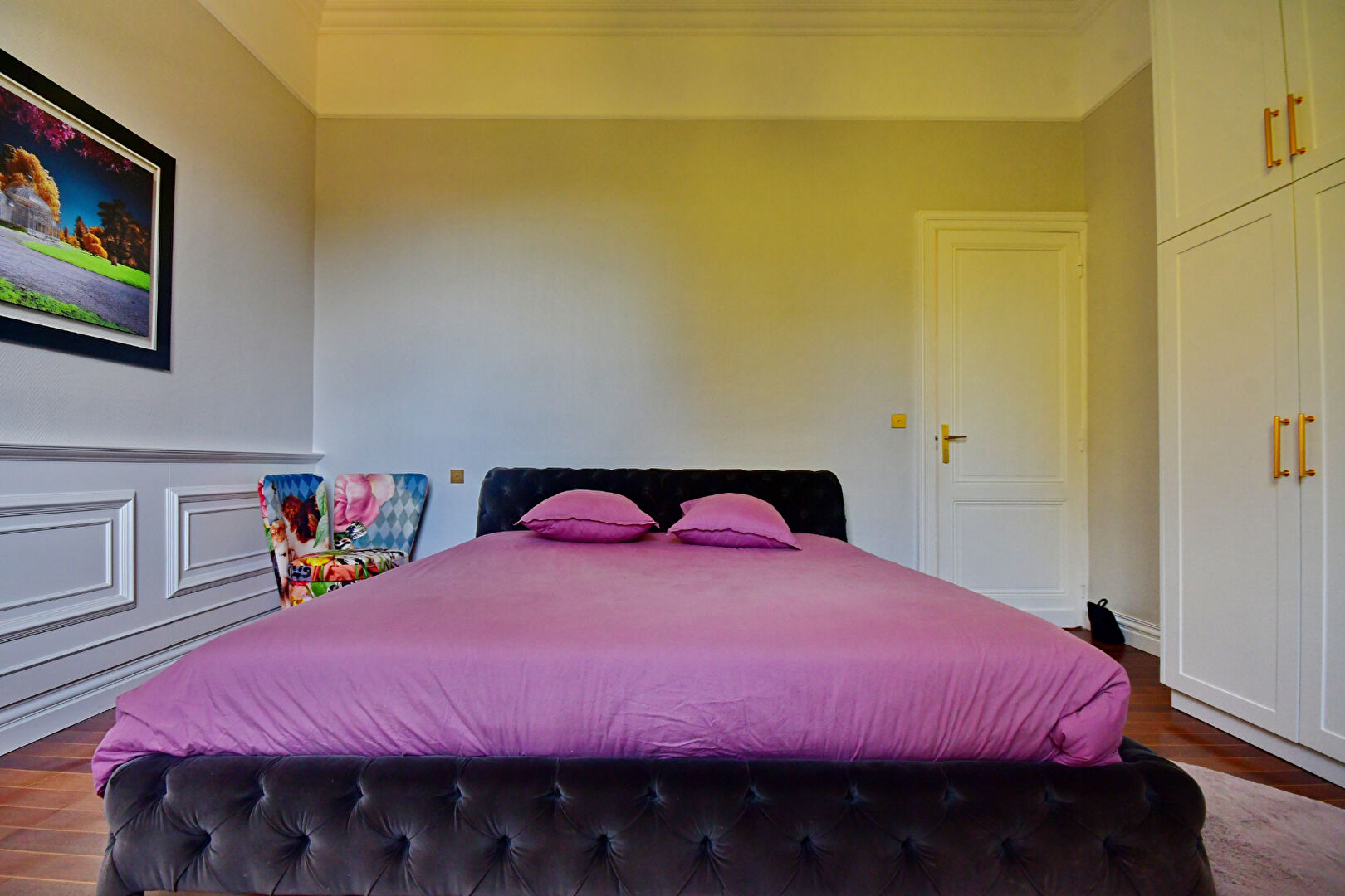 Un aménagement dans l'esprit suite parentale avec une vaste chambre, une pièce dressing de 15m² et une belle salle de bains avec WC.