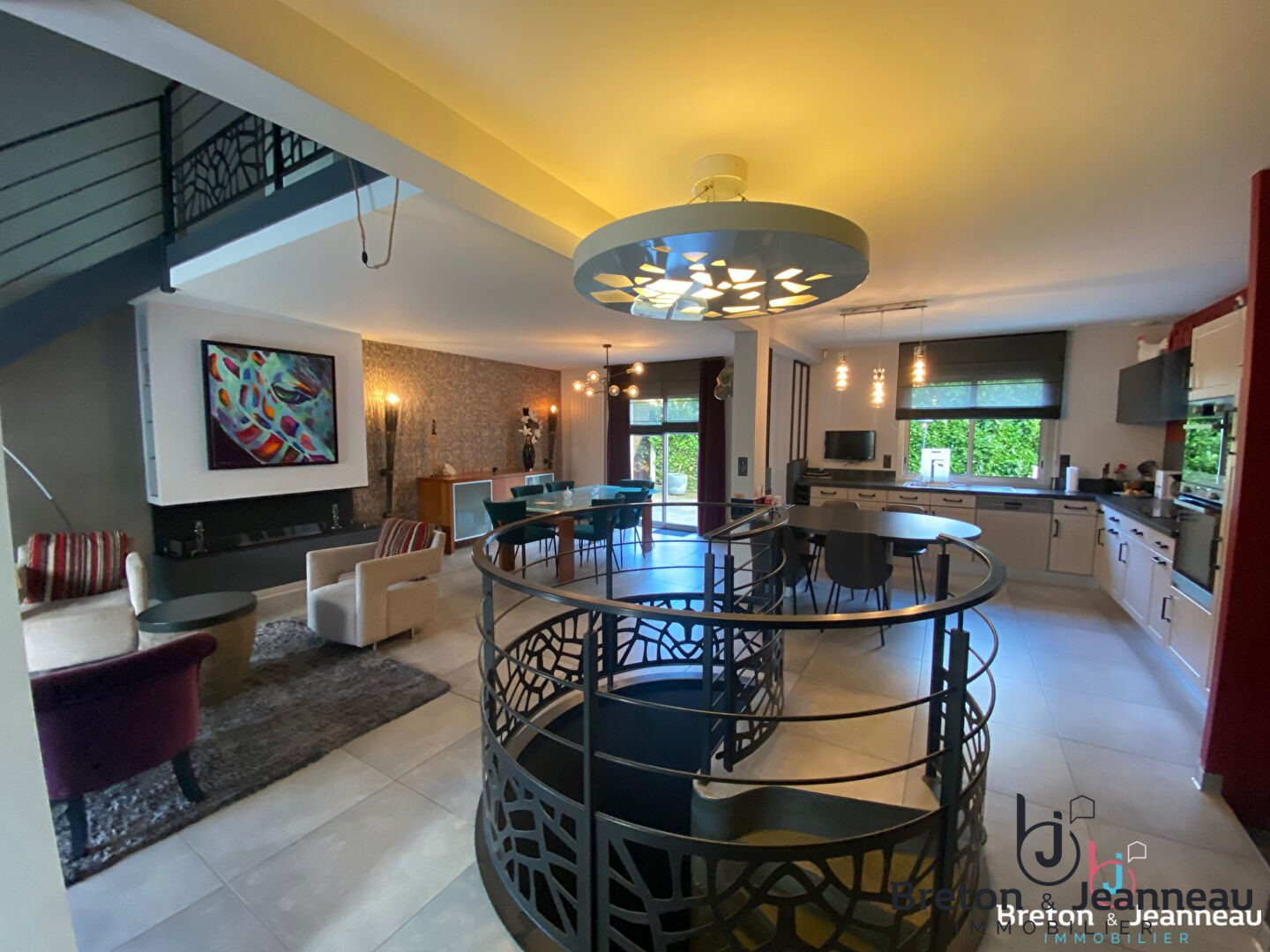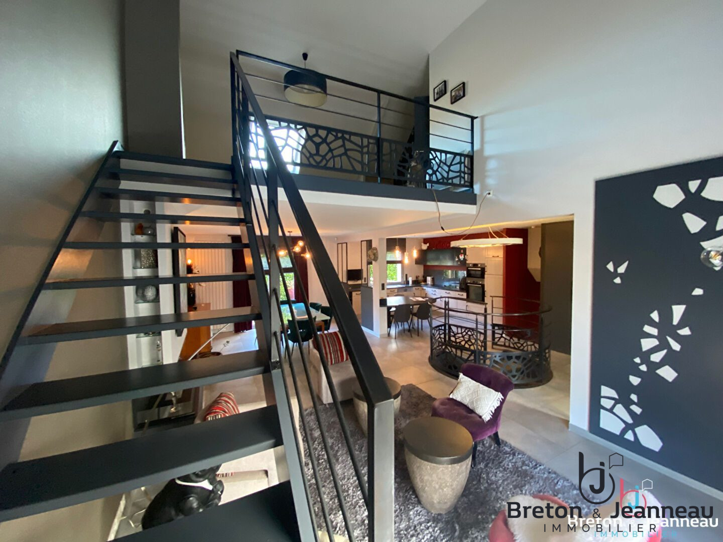 BRETON & JEANNEAU vous propose à la vente à FOUGERES. avec récente baisse de prix, cette maison construite en 1989 et récemment rénovée avec gout et belles prestations. Elle se compose au rez-de-chaussée d'une entrée ouverte sur une vaste pièce de vie séjour/salon/ cuisine aménagée et équipée , Une très jolie cheminée Ethanol agrémente le séjour. WC. Au 1/2 étage inférieur vous trouverez deux chambres dont une avec dressing équipé, salle d'eau, dégagement. Au 1er étage, une grande mezzanine vous invite à la détente. A la suite , une chambre, dégagement et salle d'eau. En 1/2 étage inférieur, une grande pièce et un bureau actuellement à usage de chambre. Le sous sol comprend un garage pour deux voitures avec porte motorisée, cave et buanderie. Fenêtres double vitrage avec volets roulants électriques, chauffage électrique (appareils récents) Situation proche des commerces de quartiers et écoles, centre ville à 15 mn à pied.