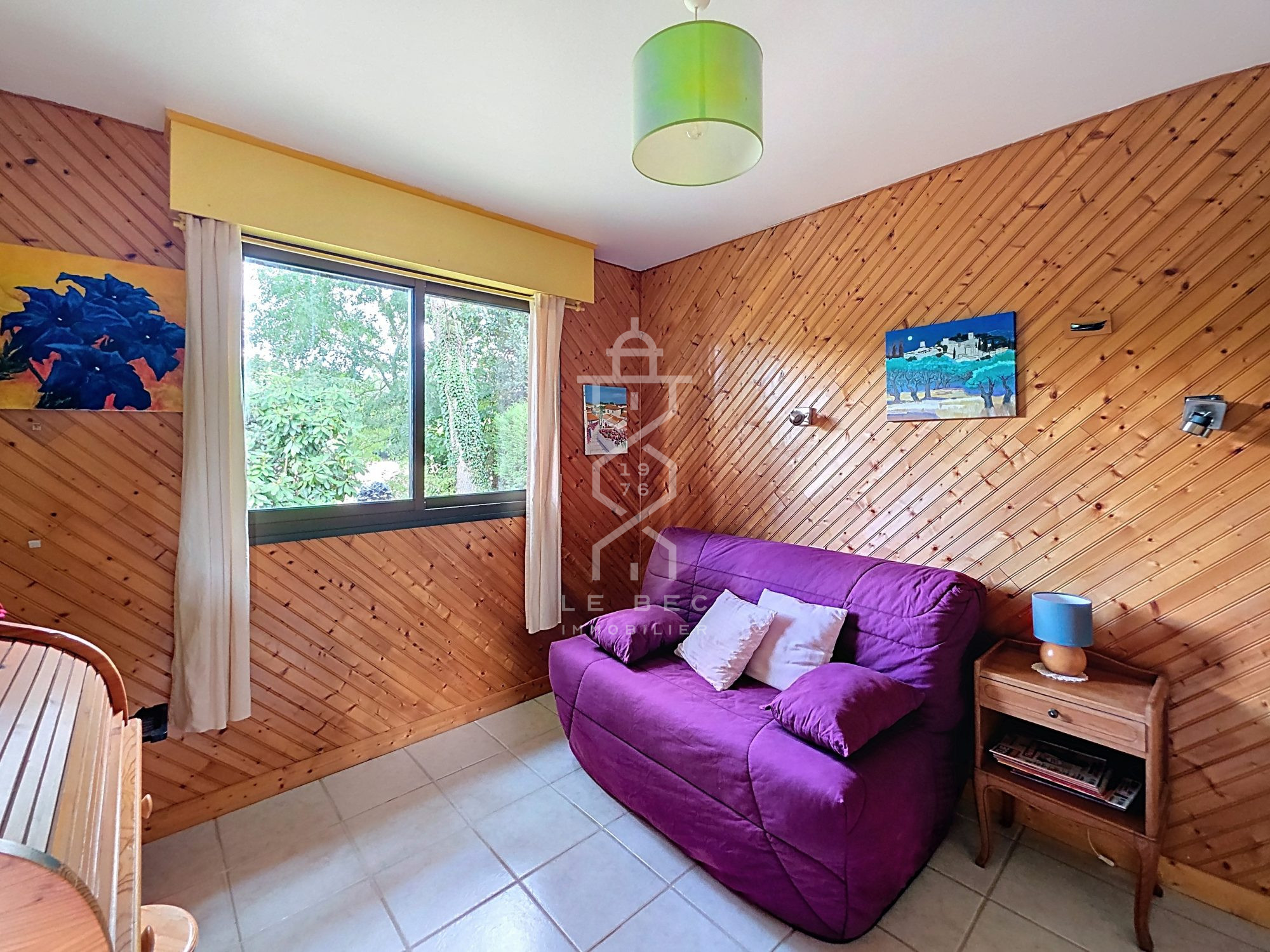 En ossature bois de 1985 comprenant une entrée, un salon séjour lumineux avec une cuisine ouverte, une chambre et une salle de bains ainsi qu'un WC indépendant.