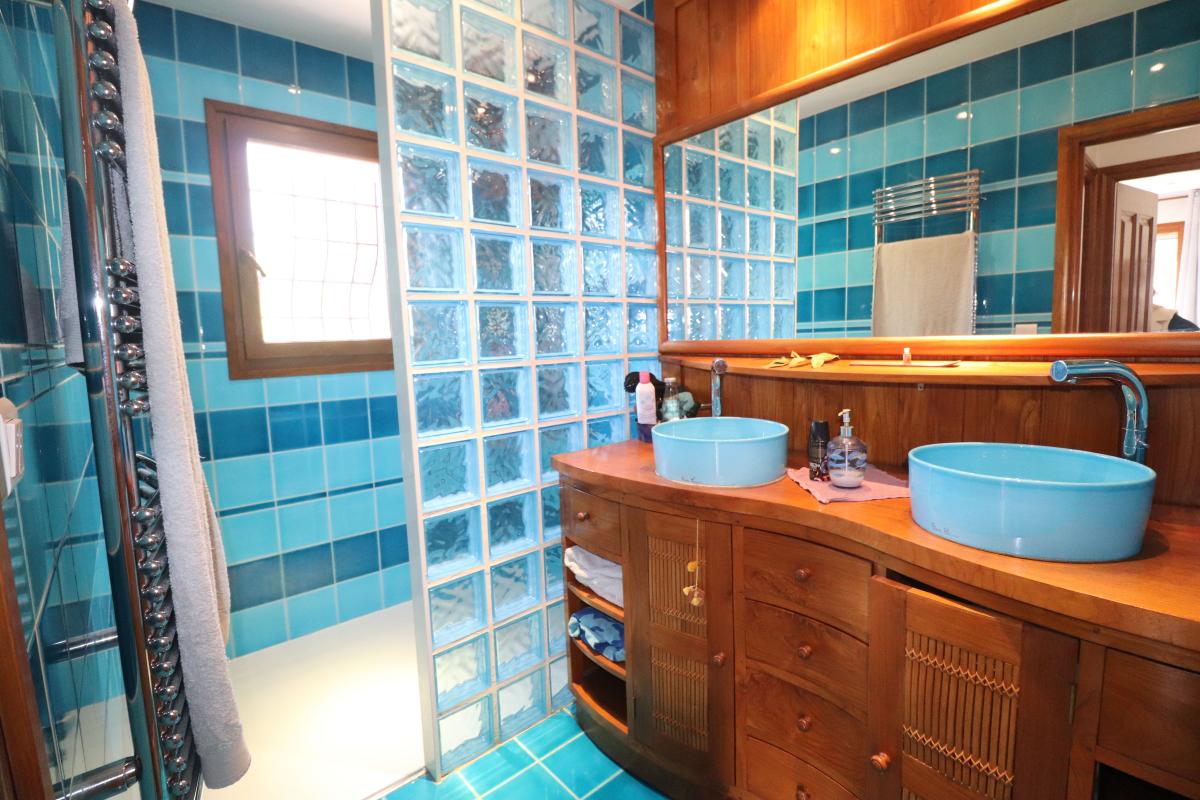 - A l'étage : un dégagement, quatre chambres avec rangements, un WC indépendant et deux salles de douche. Climatisation réversible, cheminée, chauffage au gaz de ville, portail électrique avec visiophone.