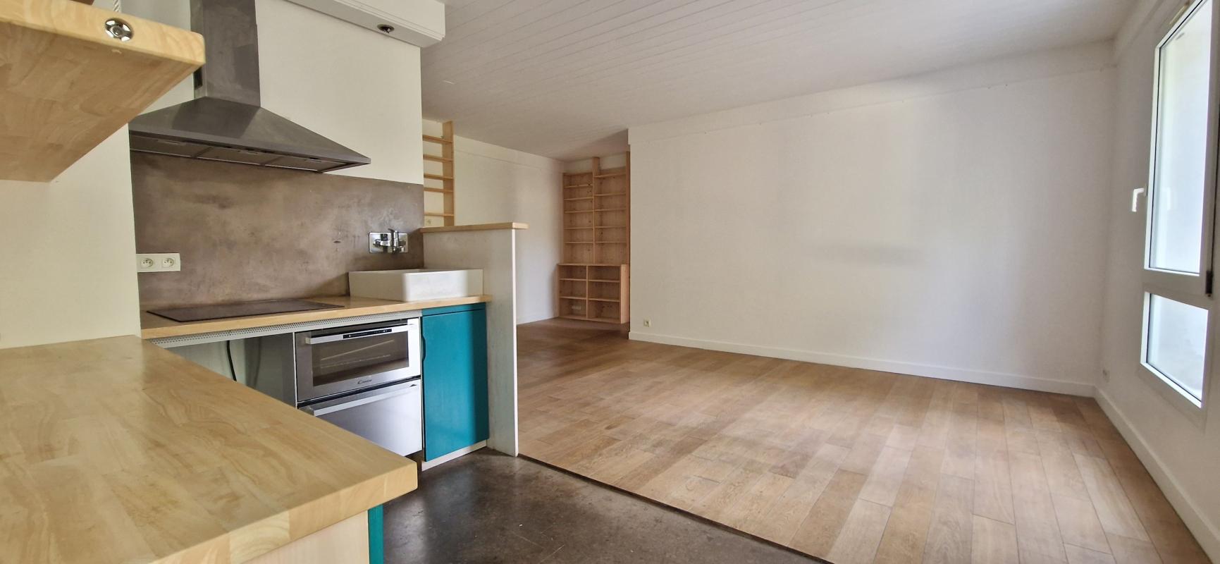 * Un séjour lumineux avec un coin cuisine aménagé et équipé