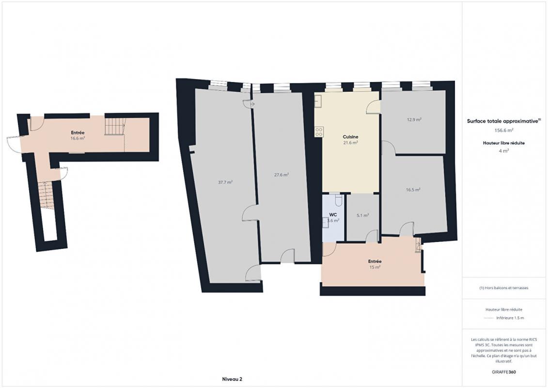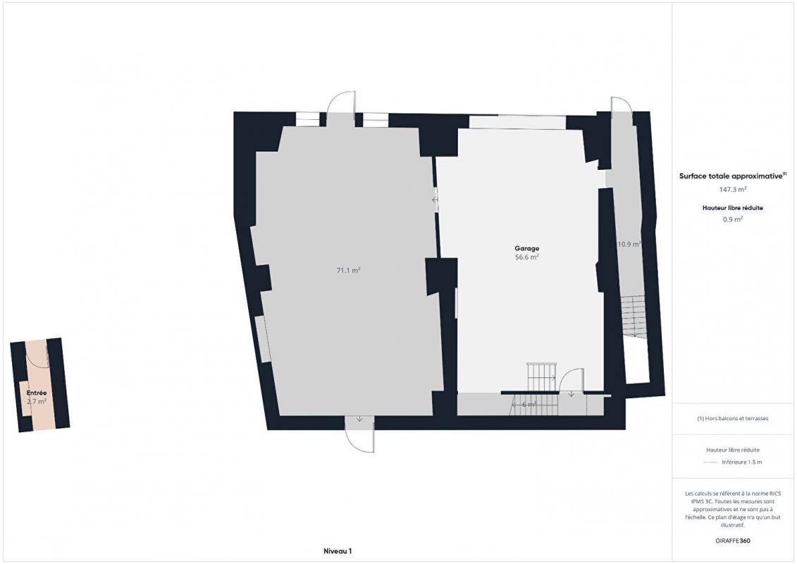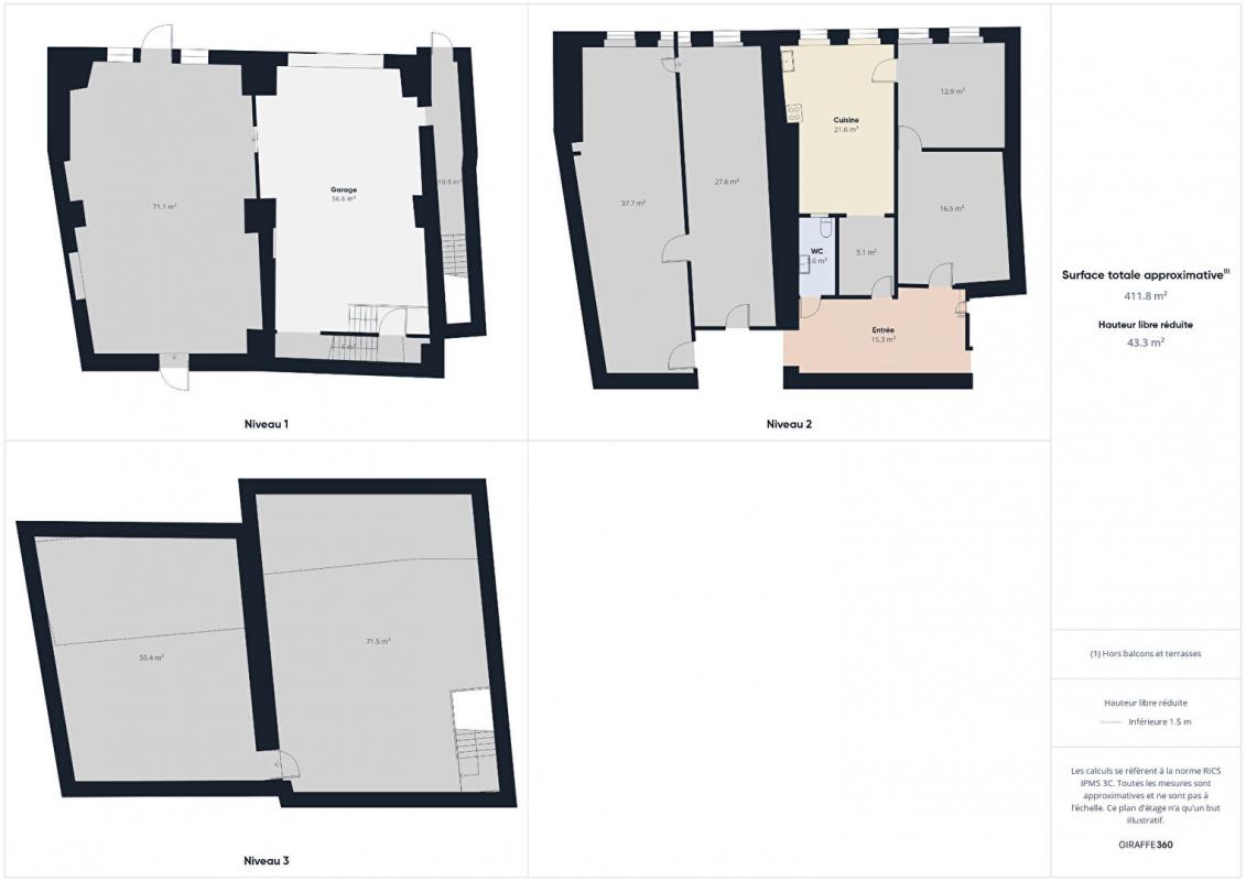 Aubenas(07200)Bien à rénover d 'environ 140M² +grandes dépendances au RDC d'environ 140 M² avec hauteur sous plafond de 3.30M +combles de 140m² environ de surface plancher.Le bien totalise une surface de plancher de 411M² .Fort potentiel pour investisseur pourrait convenir pour espace de stockage garage pour véhicules ou tout autres activités ,.Arret de bus à 2 minutes ,commodités à proximité .Prevoir branchement d eau et edf .Tout à l'égout .Biens non soumis au DPE .Prix 64990Honoraires charge vendeur .