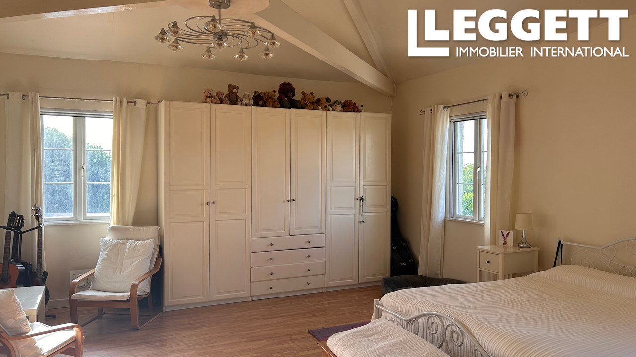 La maison principale offre de vastes pièces lumineuses, alliant le charme charentais à un confort moderne. À seulement quelques minutes des commodités et à 45 minutes d'Angoulême (TGV) et Bordeaux, ce domaine est idéal pour les amoureux des chevaux, les familles ou un projet touristique.