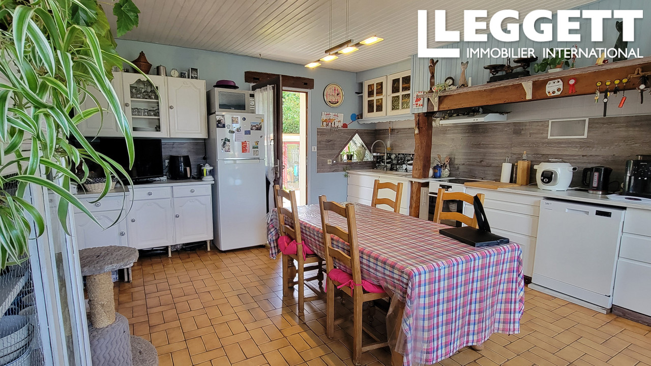 L'intérieur dévoile une ambiance chaleureuse et accueillante avec sa cuisine spacieuse et traversante, ouvrant directement sur la terrasse, son espace de vie convivial au carrelage d'origine et équipé d'un poêle à bois, ses trois chambres confortables, sa salle-de-bain, sa salle d'eau et ses 2 toilettes.