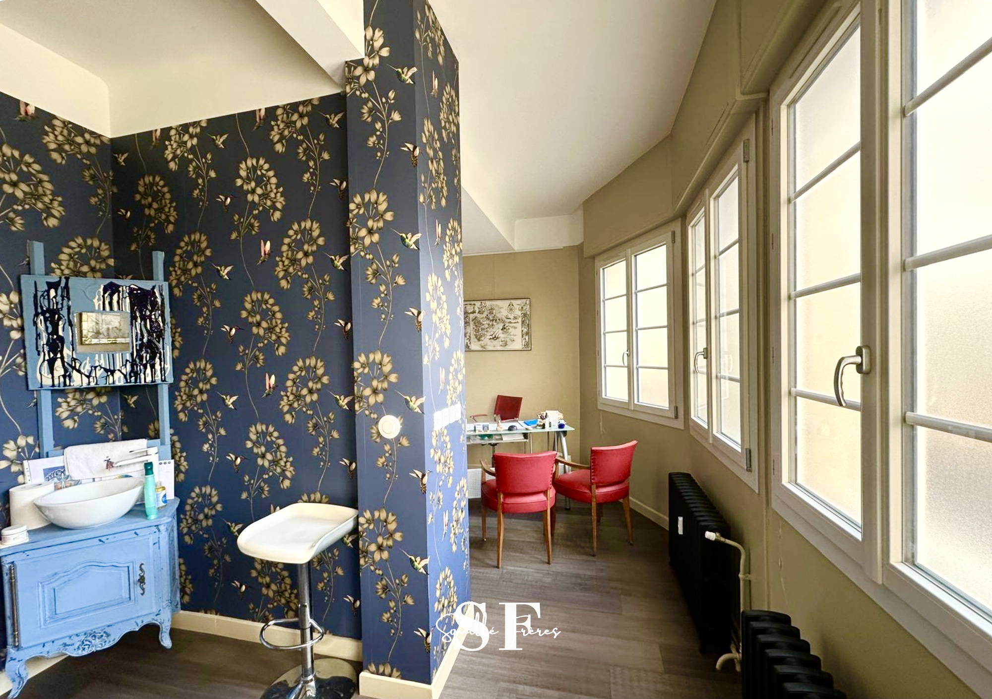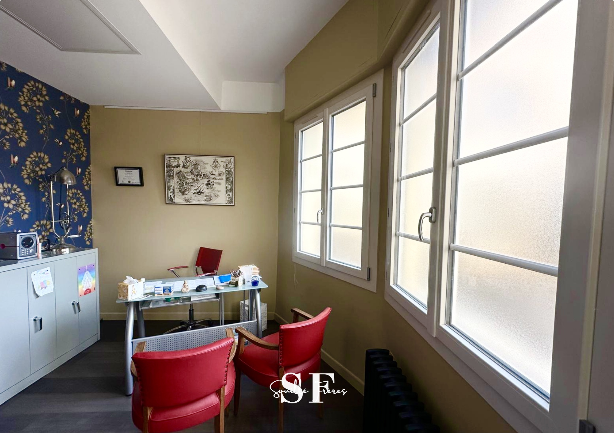 Un local professionnel de 27m2 composé d'une salle d'attente avec wc + point d'eau. Un bureau ainsi qu'une pièce supplementaire. Cet espace est lumineux et également entièrement rénové.