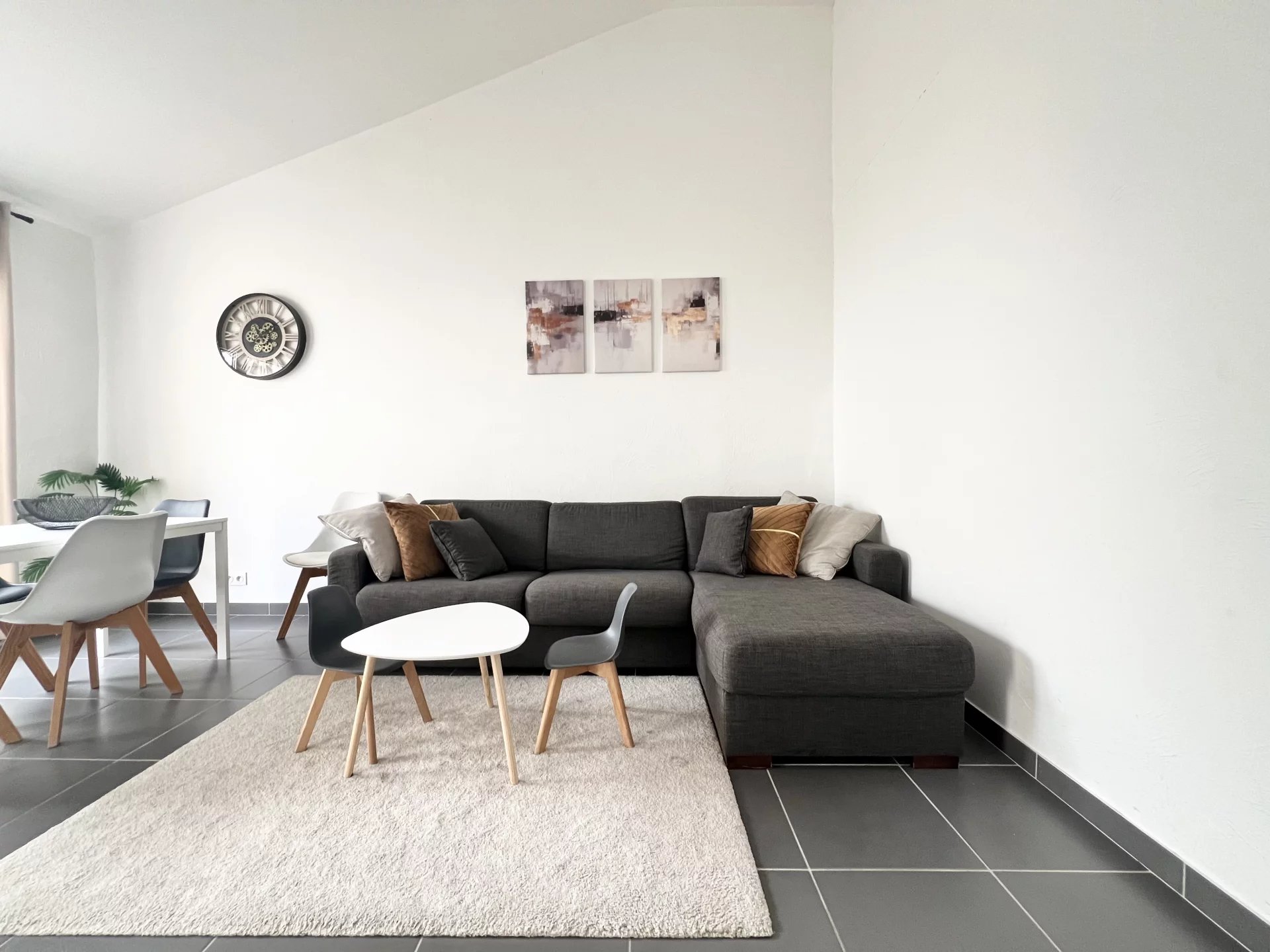 Un séjour lumineux de 22 m² offrant de belles hauteurs sous plafond avec cuisine semi-ouverte entièrement équipée, exposé plein sud et ouvrant sur une agréable terrasse de 20 m2.