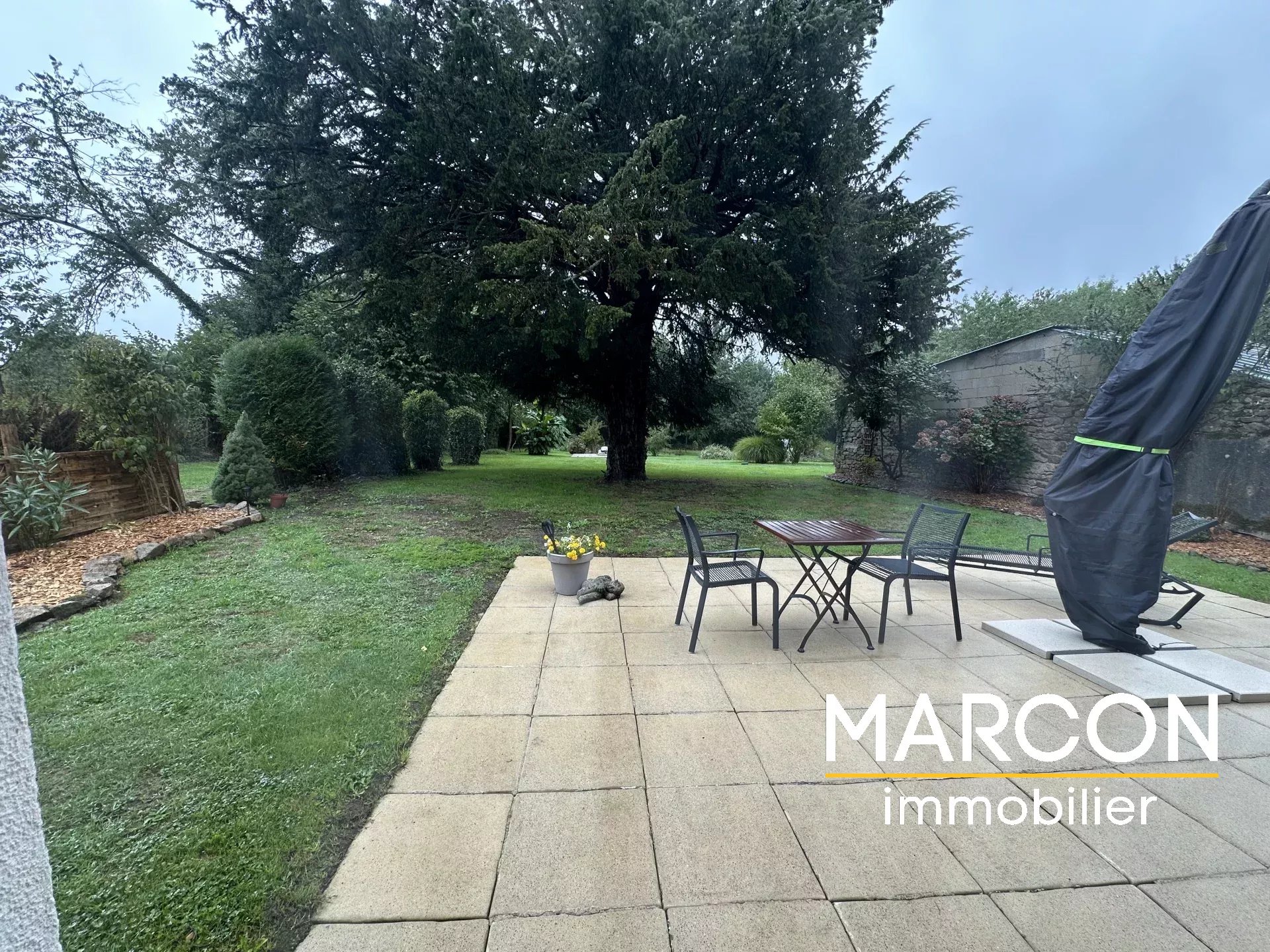 Derrière la maison, il y a un grand parc arboré de 3000 m² environ avec un petit bois.