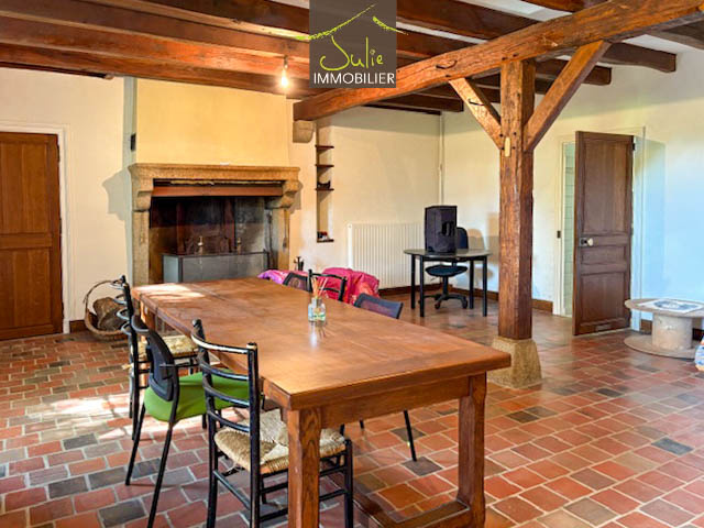 Nichée dans un environnement paisible, cette magnifique longère entièrement rénovée séduit par son authenticité et son confort moderne. Elle offre de beaux volumes et une atmosphère chaleureuse, idéale pour une vie de famille ou un projet de maison d'hôtes. Dès l'entrée, le ton est donné : une vaste cuisine indépendante de 20 m2, aménagée et équipée, invite à la convivialité. Dans le prolongement, le salon-séjour sur tomettes, agrémenté d'une cheminée à foyer ouvert, dégage une ambiance authentique et accueillante. Le rez-de-chaussée se complète d'un WC, d'une salle de bains avec douche et baignoire, d'une chambre ou un bureau et d'une autre chambre avec sa sde. À l'étage, un large couloir équipé de rangements dessert cinq chambres spacieuses (de 10 à 22 m2), une salle de bains avec baignoire et douche, un WC indépendant ainsi qu'un grenier de 42 m2 offrant un potentiel supplémentaire selon vos envies. Côté technique, la rénovation a été menée avec soin : huisseries en PVC double vitrage, toiture et isolation refaites, assainissement récent par micro-station. L'extérieur n'est pas en reste, avec un garage, un porche, une cave et un cabanon de jardin. Le tout sur une belle parcelle de 1 470 m2.