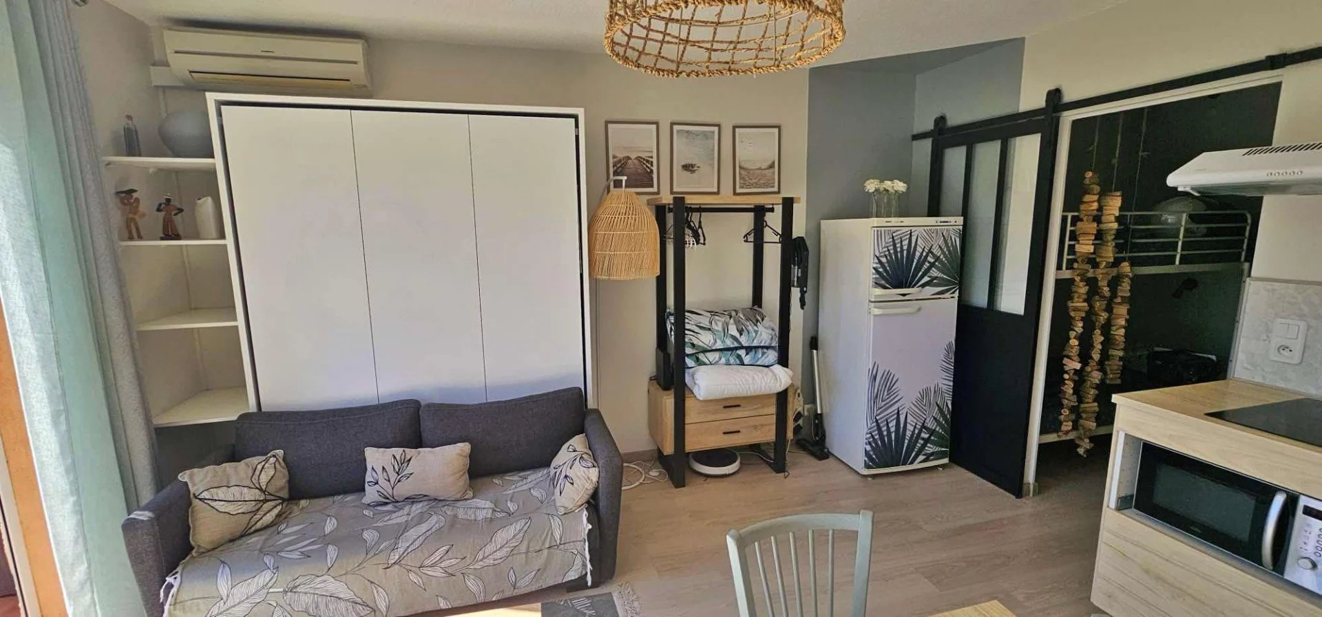 Il se compose d'une pièce à vivre avec coin cuisine, un coin nuit dans l'entrée, une salle d'eau et un WC séparé.