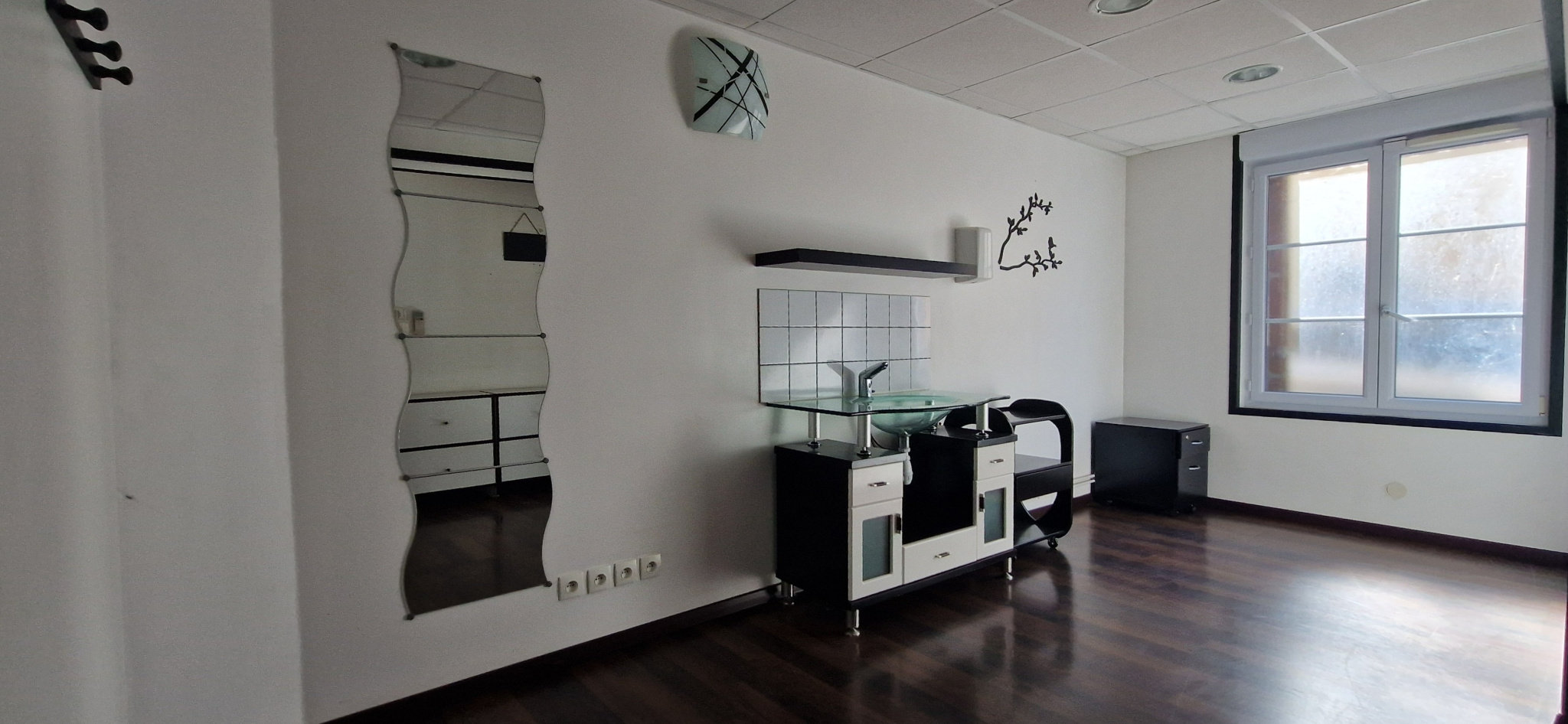 1er Appartement de type F2 loué (415EUR / mois) comprenant : entrée sur séjour ouvert sur cuisine, une chambre, salle d'eau avec wc,