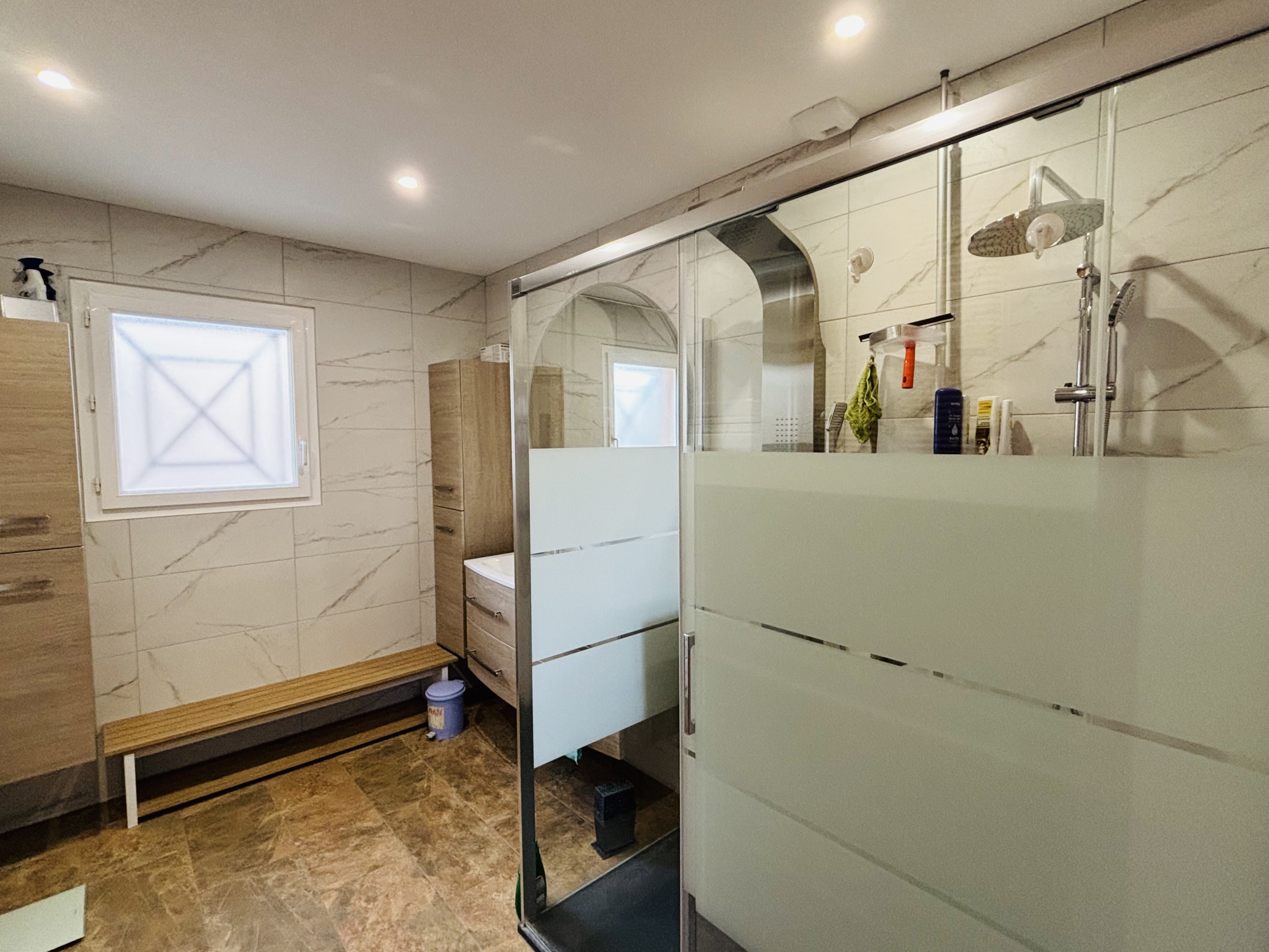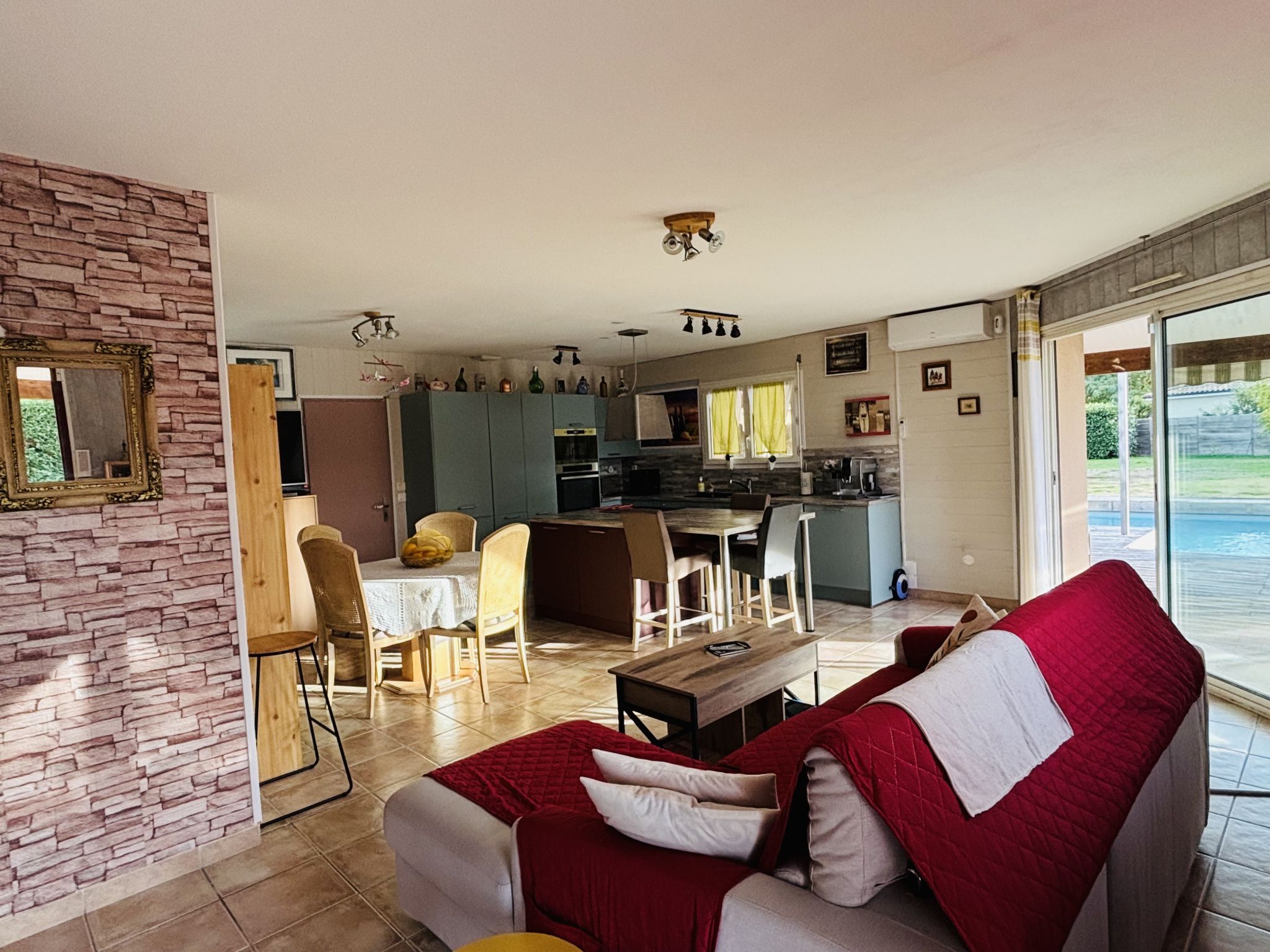 Exclusivité agence ! Carcans, dans un quartier calme et recherché, à proximité de toutes les commodités à pied, maison de plain-pied de 2002 d'environ 90 m2 habitables. Elle se compose d'un séjour avec cuisine ouverte aménagée et équipée, d'un wc séparé, d'une salle d'eau, et de trois chambres, dont une avec dressing d'environ 6 m2 et accès privé à la salle d'eau. Un garage d'environ 18 m2 avec rochelle de rangement est attenant à la maison. À l'extérieur, profitez de plus de 120 m2 de terrasse en bois, dont une partie couverte, offrant une superbe vue sur la piscine et le terrain de plus de 1 300 m2. Le jardin entièrement clos comprend une piscine maçonnée avec pompe à chaleur et volet de sécurité, ainsi qu'un pool house et un atelier. Le plus : confort moderne et faible consommation énergétique grâce aux panneaux solaires, à la pompe à chaleur et au cumulus thermodynamique. Le terrain offre également la possibilité d'un important reste à construire, idéal pour un futur projet. A visiter sans tarder !! Votre agent immobilier local : Aurélie PHOENIX 06.38.67.72.82 - MAXIME PHOENIX IMMOBILIER agences locales et indépendantes situées à Carcans et Maubuisson. Honoraires à la charge de l'acquéreur : 5,28 % TTC (360 000 EUR hors honoraires).