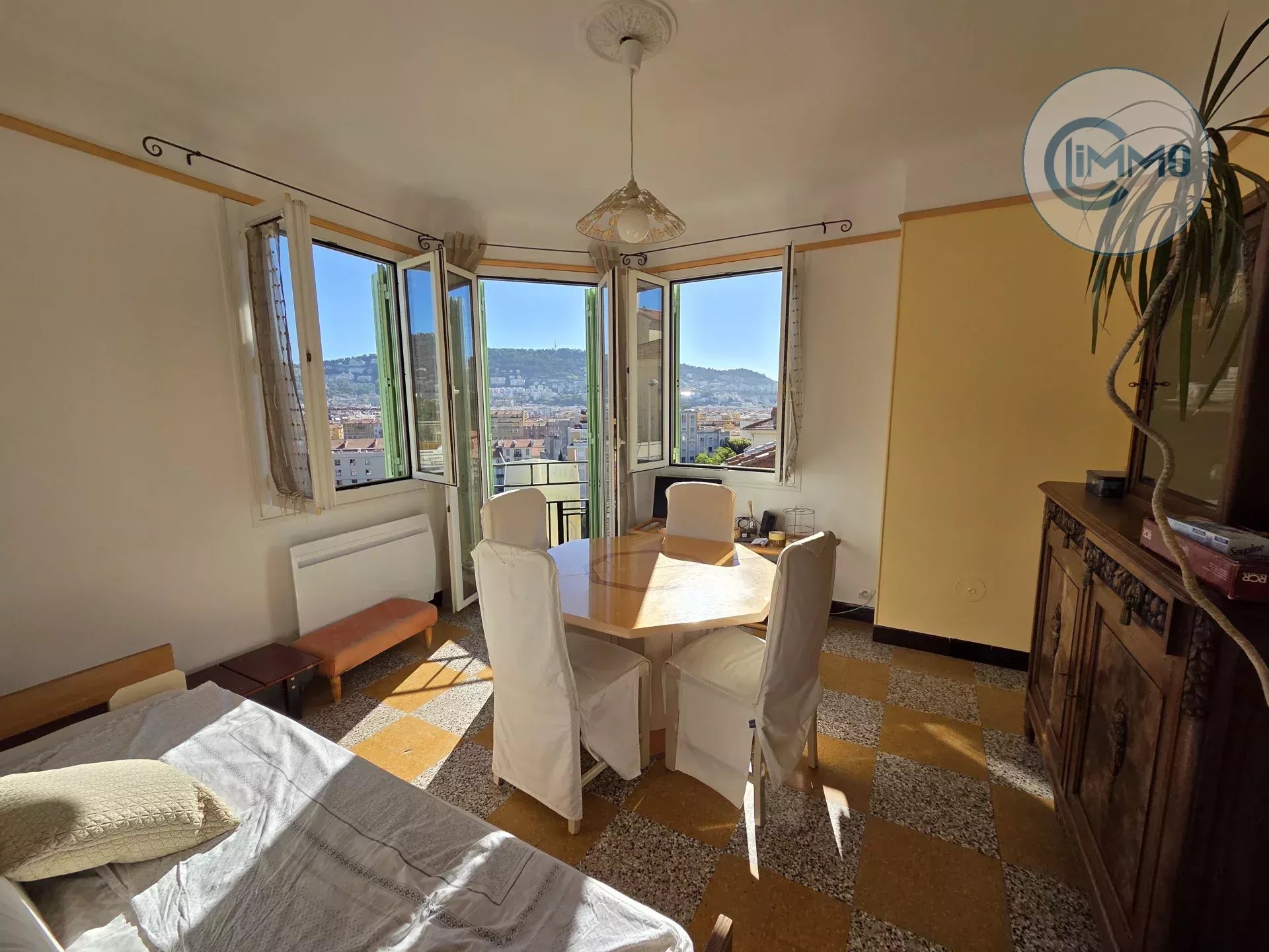 Situé dans le bas de l’avenue des Arènes de Cimiez, cet agréable 2 pièces en dernier étage offre une vue panoramique exceptionnelle sur Nice. Baigné de lumière tout au long de la journée, l’appartement séduit par sa luminosité et son environnement paisible.