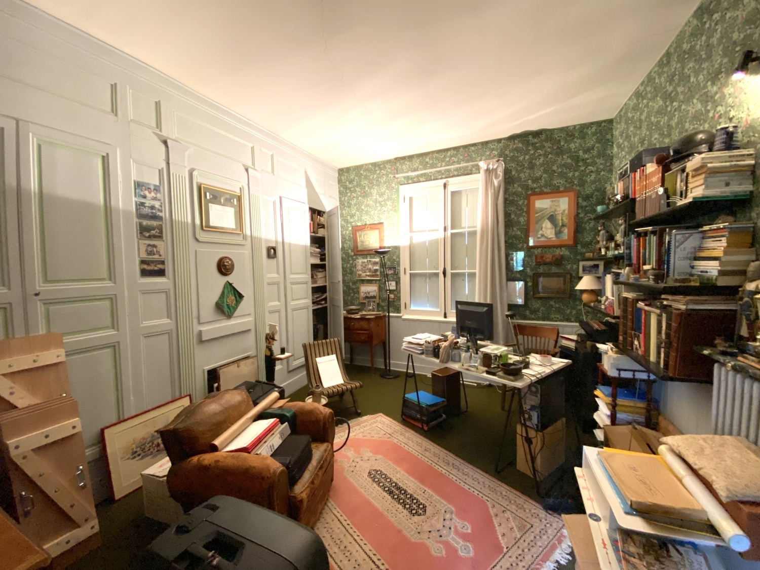 L'entrée principale en façade sud, dessert au rez-de-chaussée un salon d'angle sur parquet, un bureau, une salle à manger et une cuisine. Au 1er étage ce sont 3 belles chambres et une salle d'eau et au second une 4e chambre qui forment le potentiel de l'habitation, que les deux mansardes et le grand grenier pourront compléter. Un sous-sol en rez-de-jardin s'étend sous toute la maison et comprend une buanderie/chaufferie, une cave voutée et une grande remise, auquel s'ajoutent 2 garages avec grenier et remise.