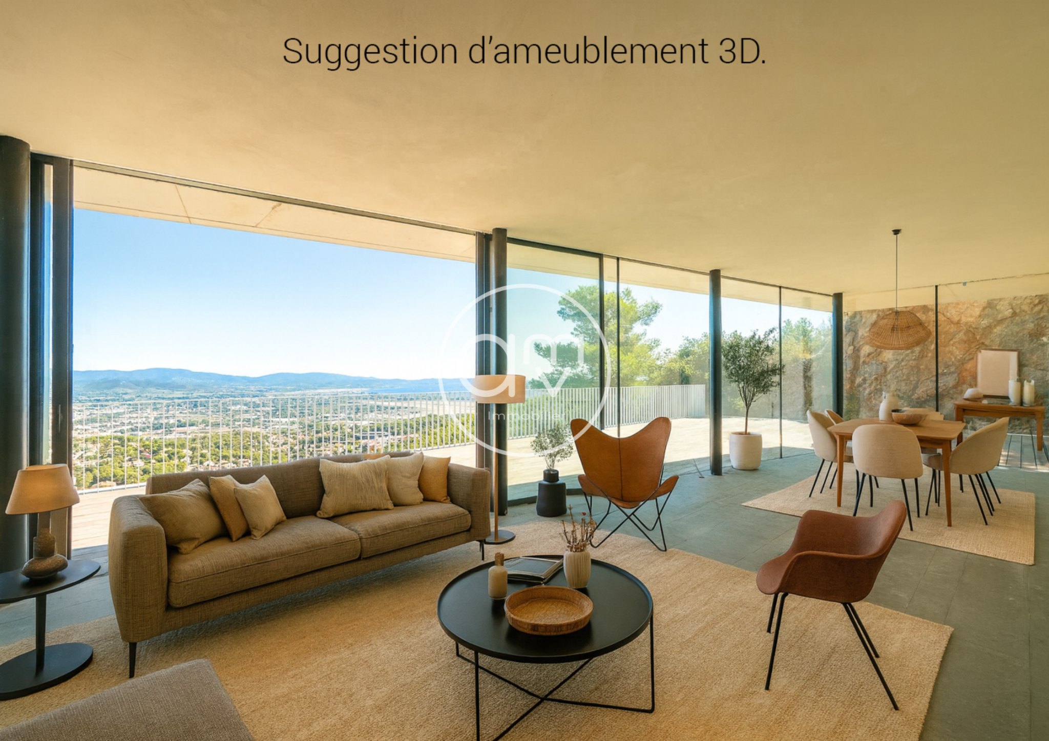 Déployée sur trois niveaux, la villa propose six pièces dont cinq chambres lumineuses, chacune disposant d'une vue exceptionnelle, la pièce à vivre reste à découvrir pour ressentir l'énergie incroyable qui circule et enfin vous aurez le choix entre baignoire et douche! De vastes terrasses se prolongent à chaque étage donnant la sensation d'être suspendu au-dessus du paysage.