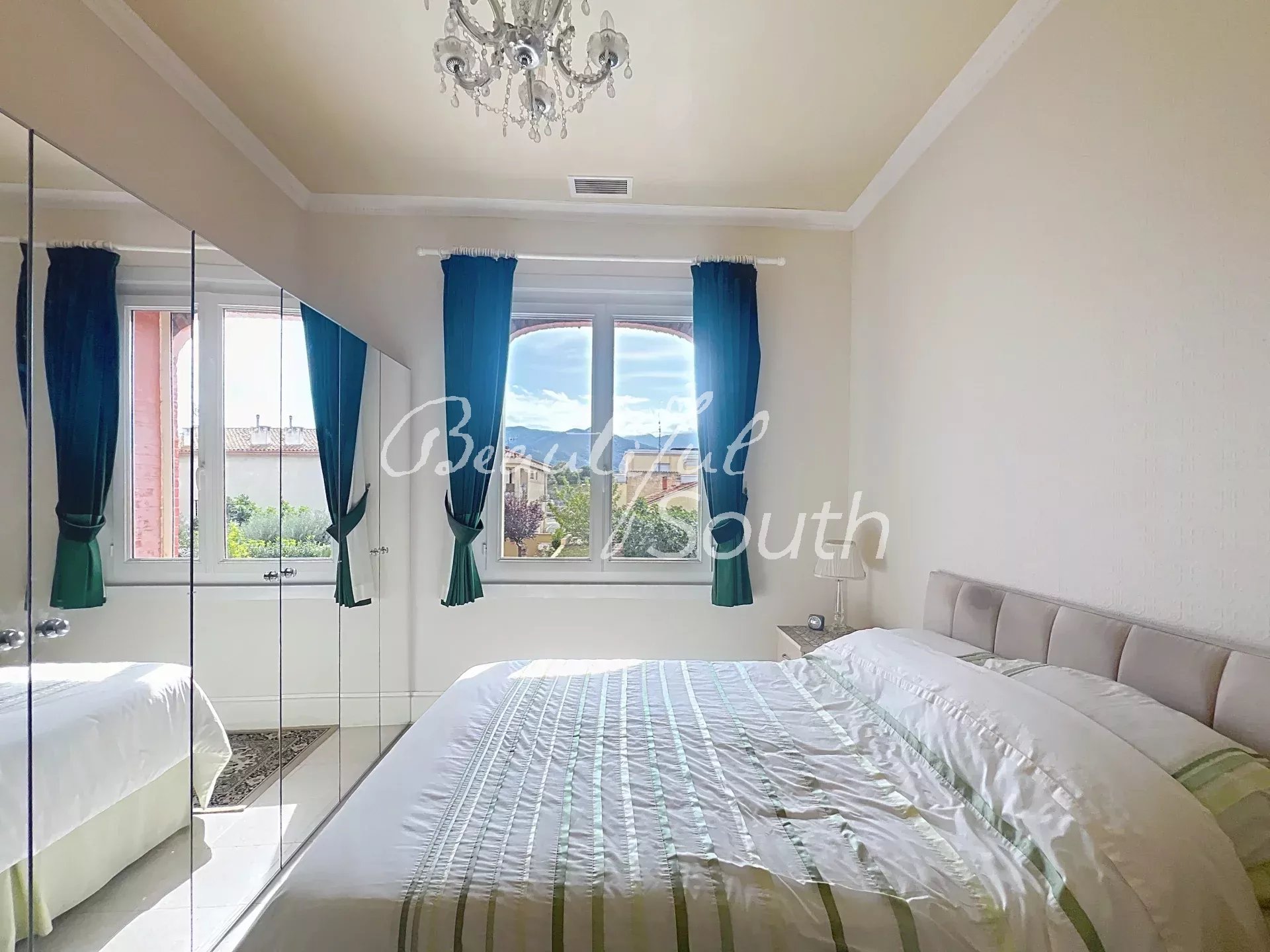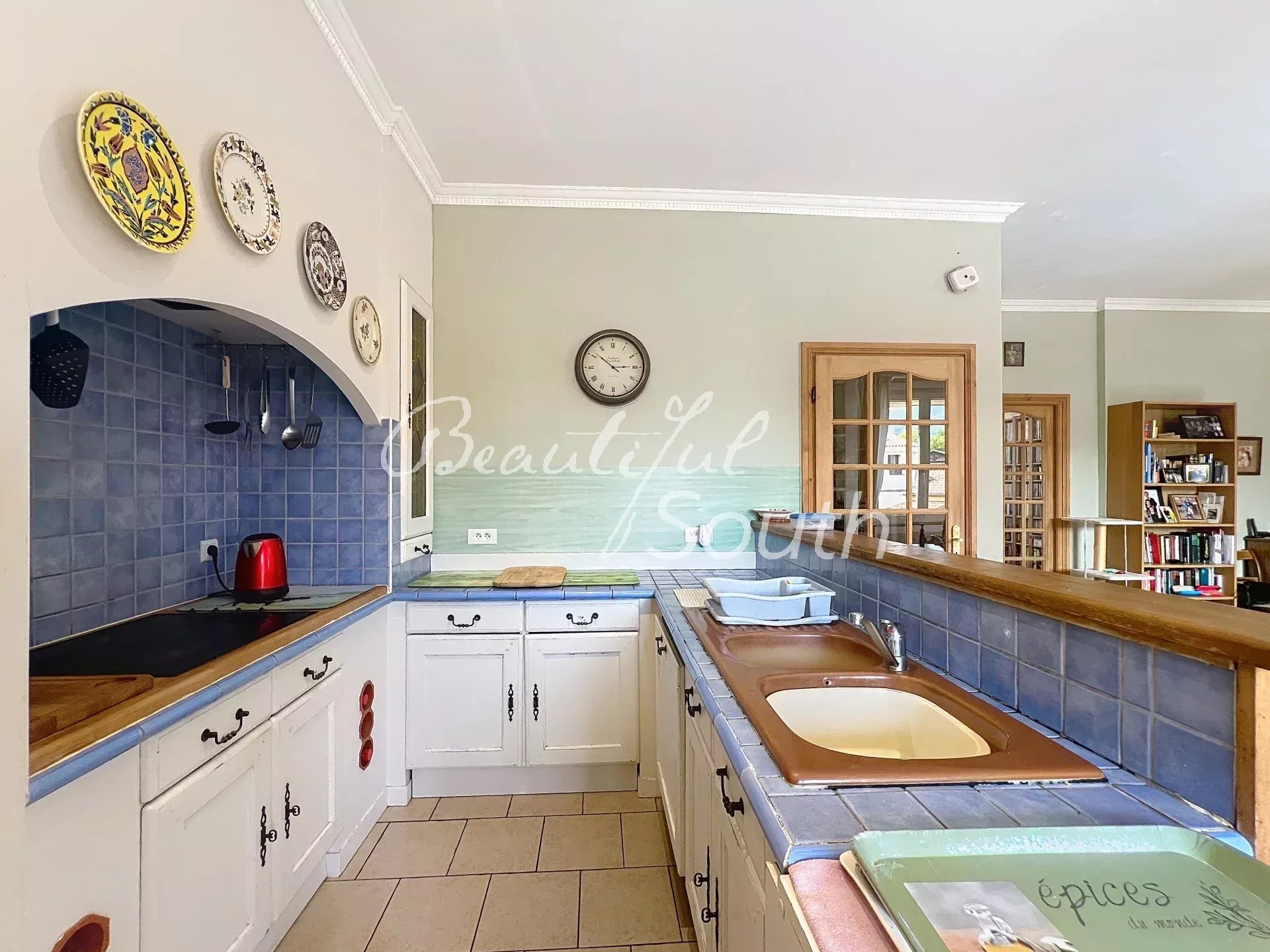 À l’étage, la pièce de vie lumineuse et exposée plein sud se compose d’une cuisine ouverte avec coin repas, donnant accès à une terrasse surplombant le jardin et la piscine, et offrant une vue imprenable sur le Mont Canigou et la chaîne des Pyrénées. Un salon chaleureux avec cheminée en pierre, trois chambres dont une suite parentale avec salle d’eau privative, ainsi qu’une salle de bains complètent ce niveau.