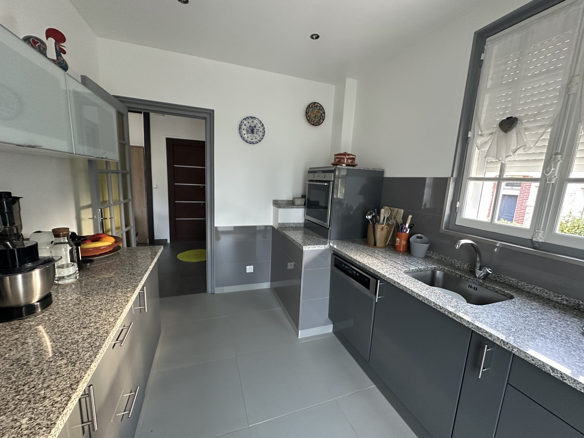 Située en plein centre ville, belle Meulière de 120 m2 habitables et 150 m2 utiles sur terrain clos de 500 m2 comprenant en rez-de-jardin, une entrée, un séjour de 30 m2 avec cheminée et belle hauteur sous plafond, une cuisine indépendante aménagée et équipée accès terrasse et jardin, une pièce palière, un bureau et une salle d'eau avec wc. A l'étage, 3 grandes chambres, une salle d'eau, wc séparés. Au sous-sol, une buanderie, une chaufferie gaz et wc. Bon état général et lumineux. Nombreux stationnements. Honoraires d'agence charge vendeur.