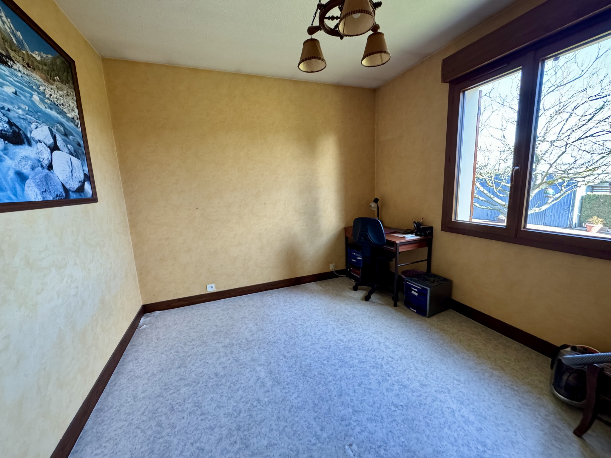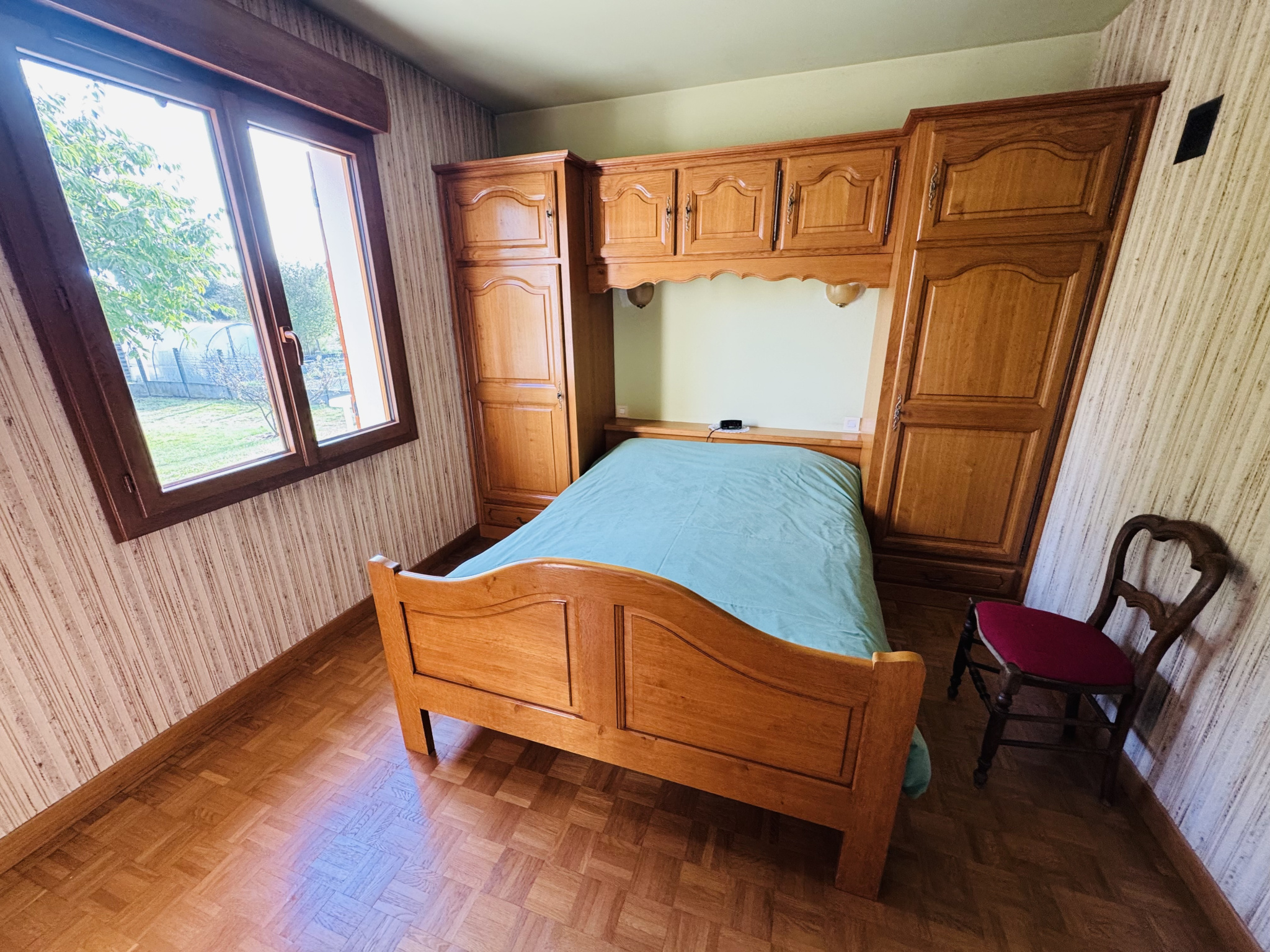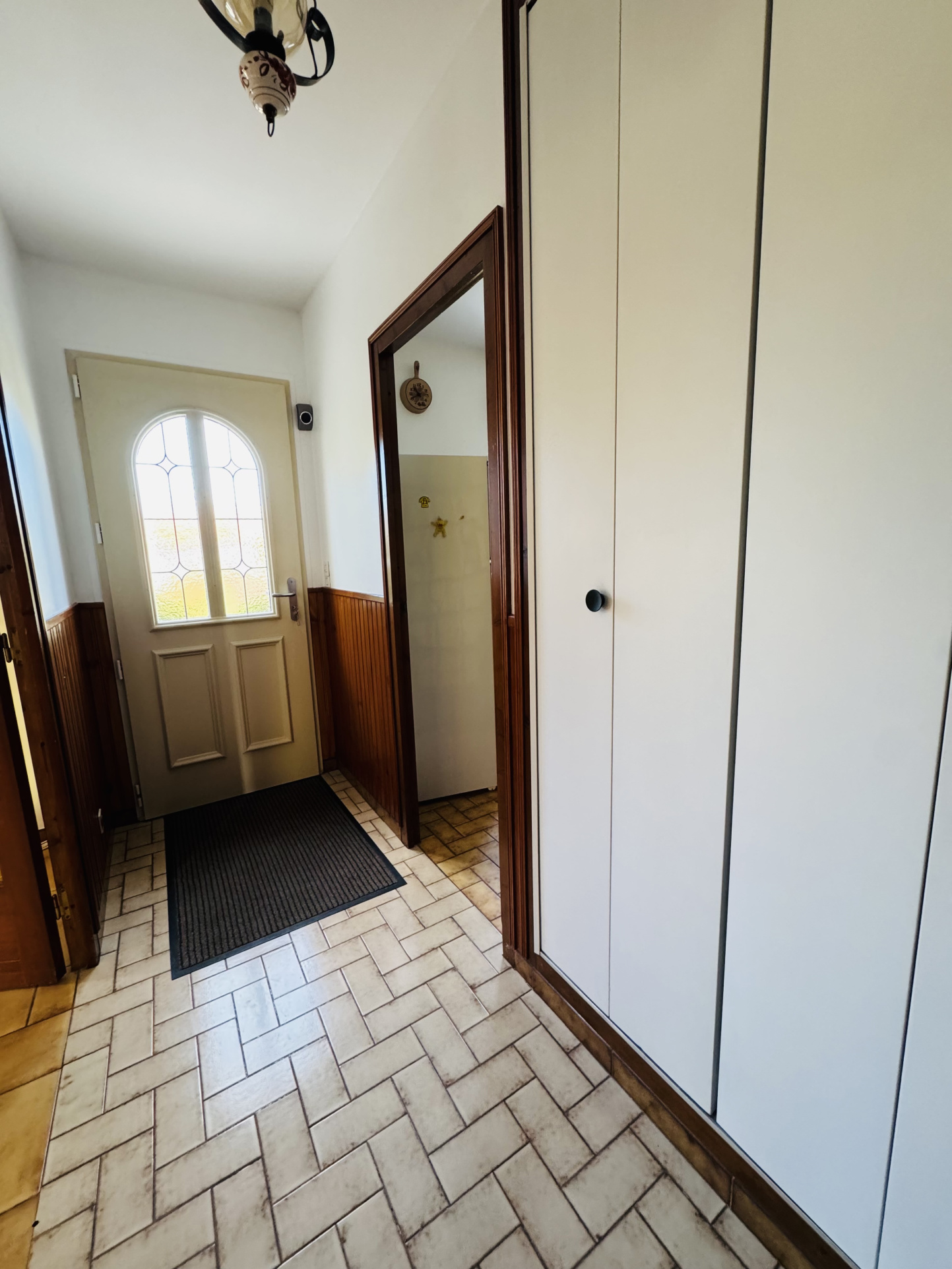 Cette maison de 1985, d'une superficie de 89 m2 environ, est composée d'une entrée desservant une cuisine aménagée et équipée, un salon/séjour avec cheminée ouvrant sur une terrasse (20 m2), un couloir desservant une salle de bains, 3 chambres avec placards, WC.