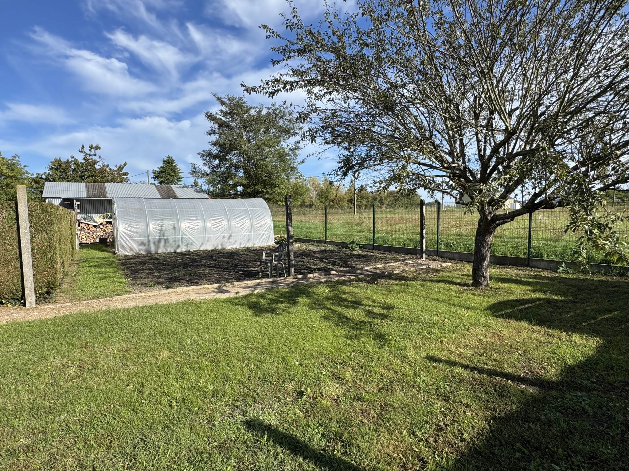 Un garage en tôle de 48 m2. Le tout sur un terrain de 1250 m2 environ, clôturé et arboré, avec un jardin prêt à l'emploi.