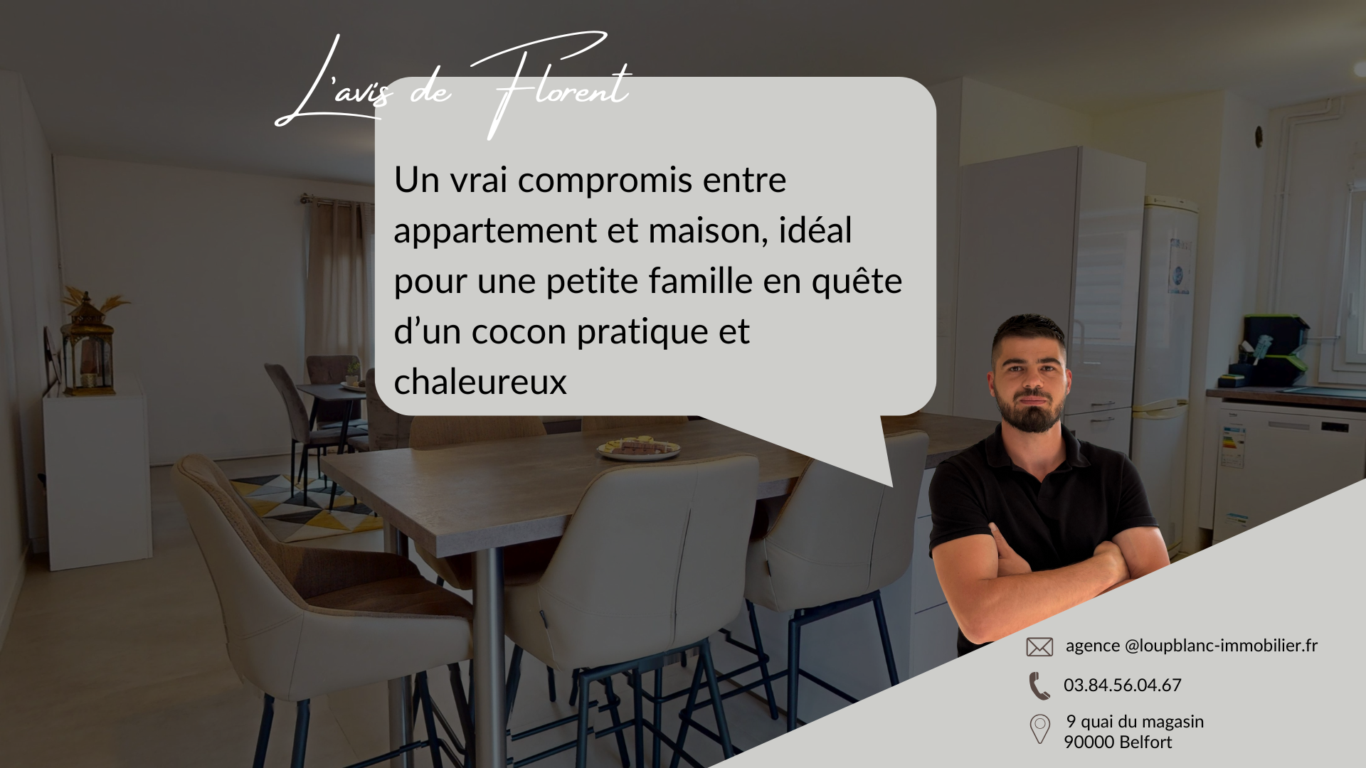 L'avis de Florent : 'Un vrai compromis entre appartement et maison, idéal pour une petite famille en quête d'un cocon pratique et chaleureux.'
