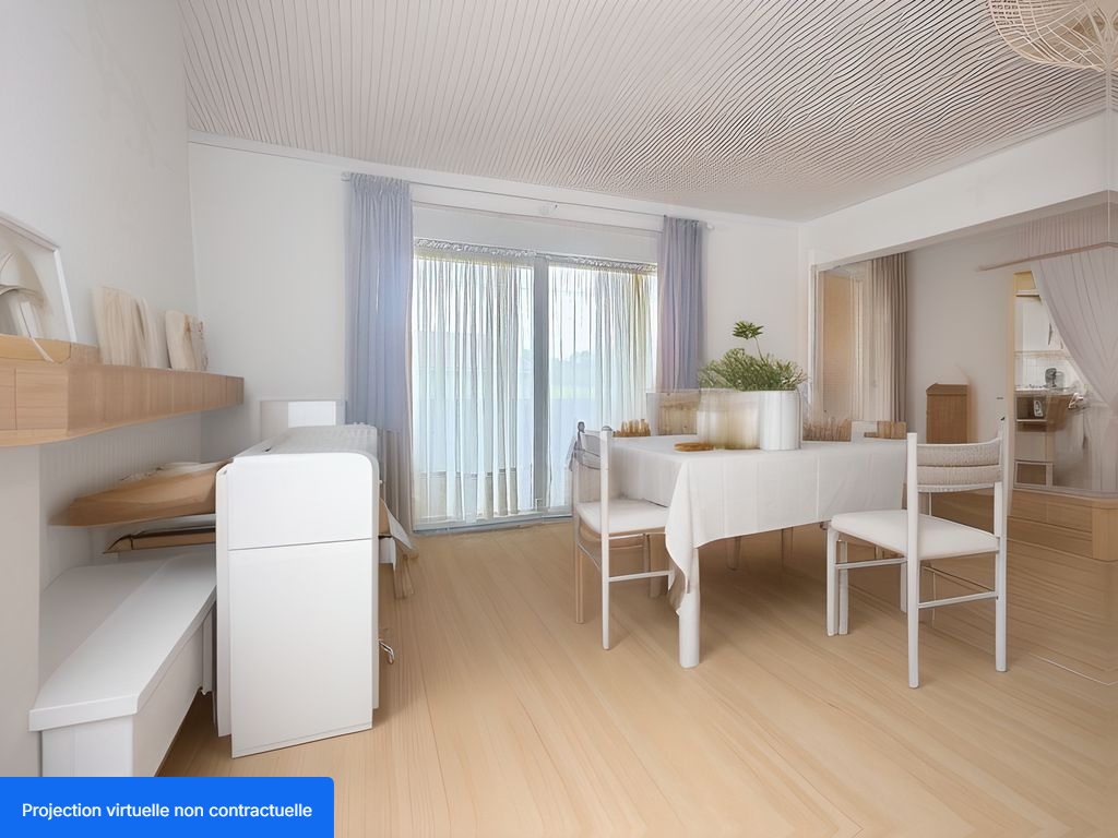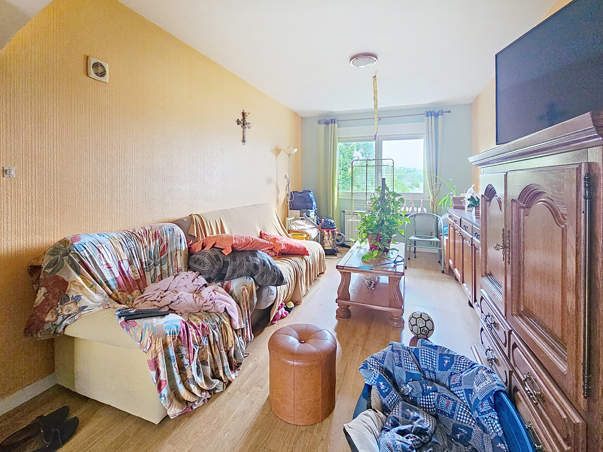 - Séjour (30 m2) : sol revetement plastique, poele à bois, baie vitrée acces balcon.