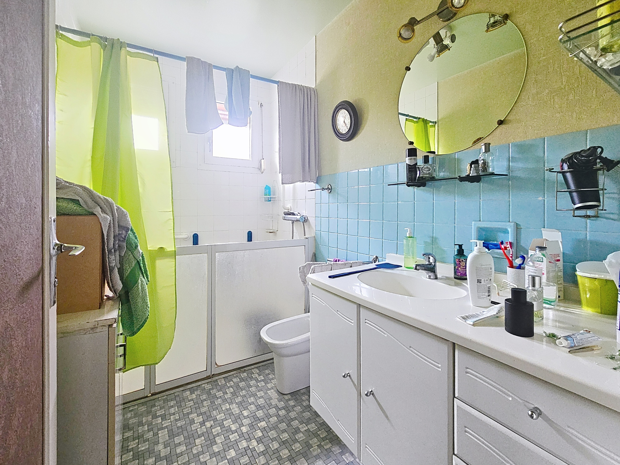- Salle d'eau (4,50 m2) : sol carrelage, avec meuble vasque, douche PMR, bidet.