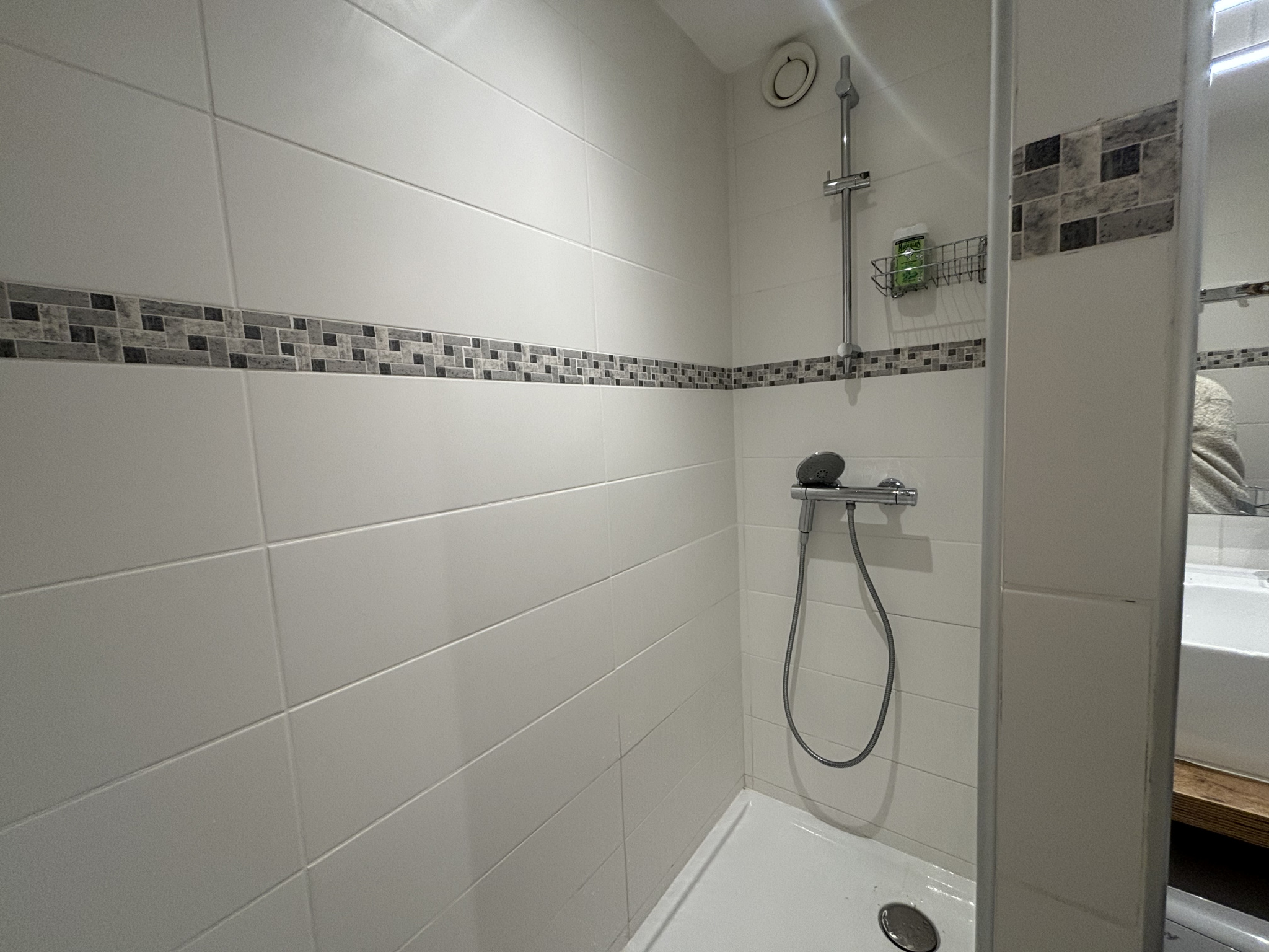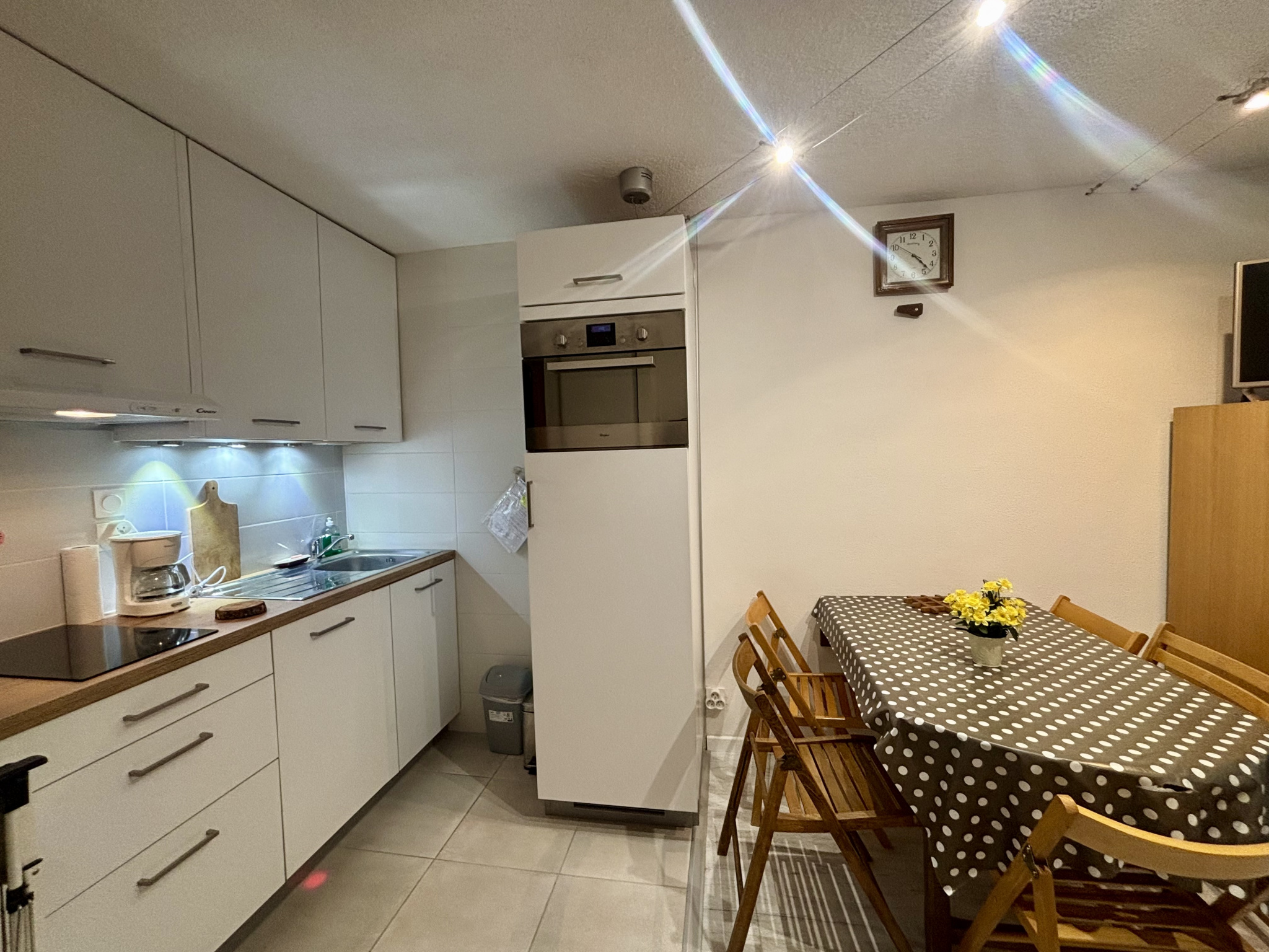 Il se compose d'une entrée avec coin montagne, d'une salle de douche, d'un WC séparé, ainsi que d'une pièce de vie lumineuse avec kitchenette équipée et séjour ouvrant sur un balcon exposé SUD doté d' un portillon pour rejoindre les pistes de skis et idéal pour profiter du soleil.