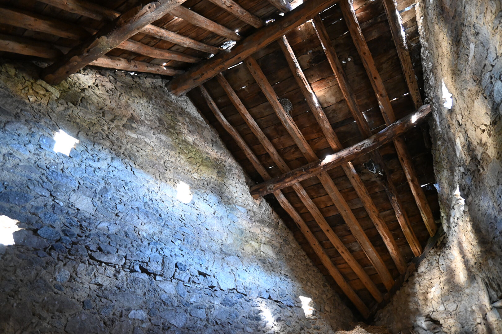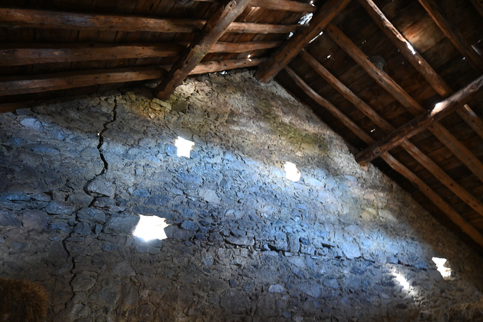 Mur et toitures d'origine, certaines poutres de la charpente sont à remplacer et le plancher est en mauvais état.