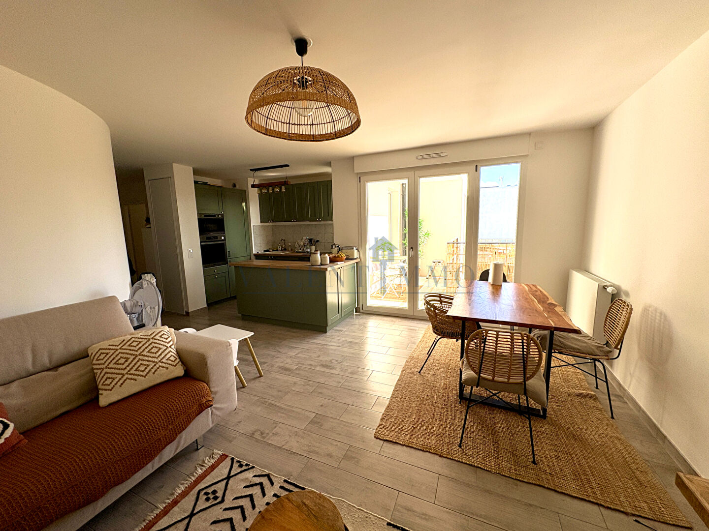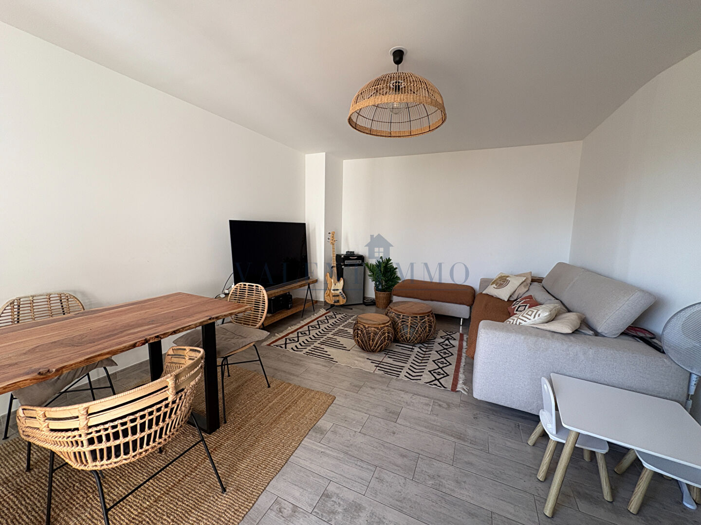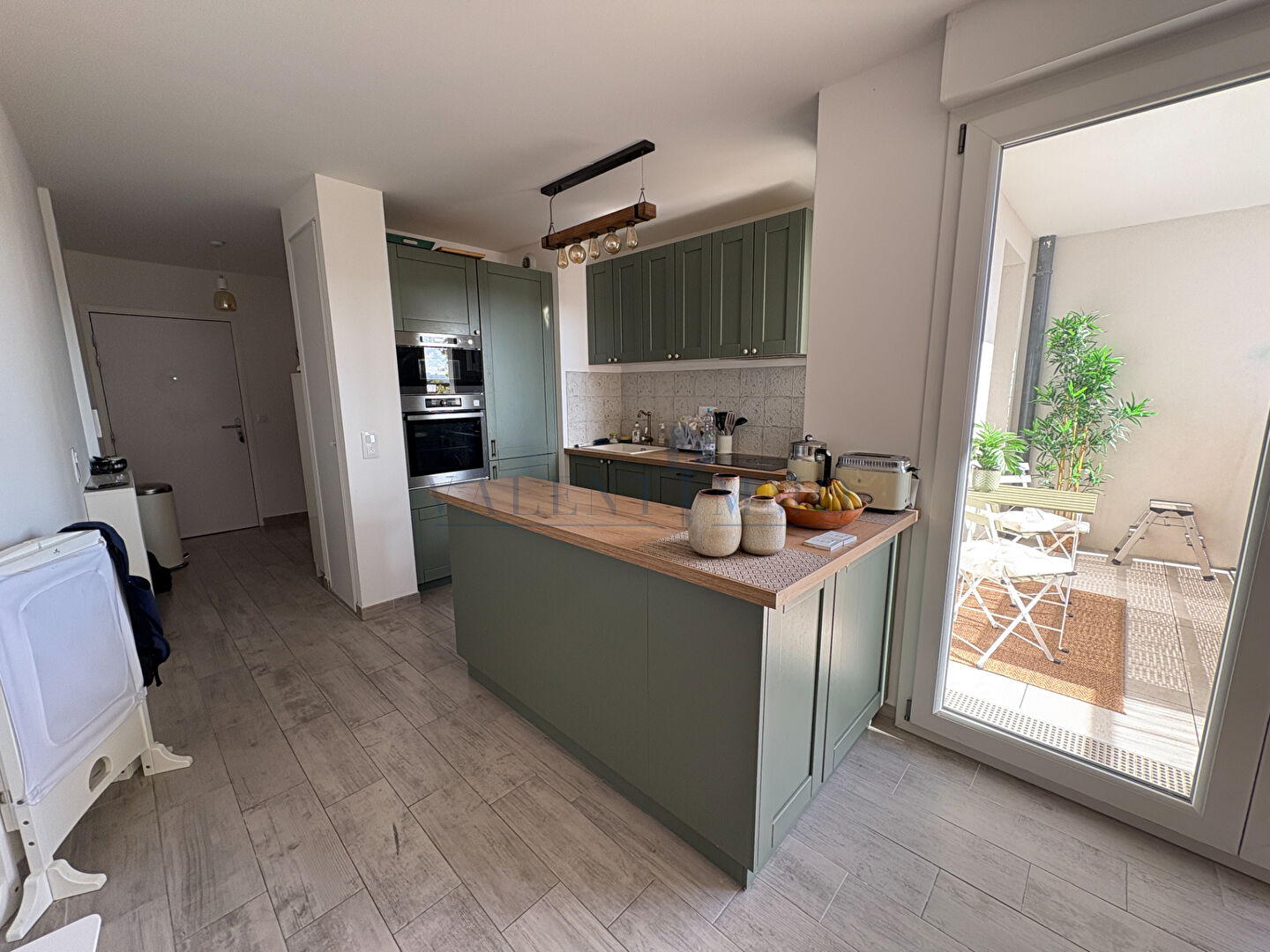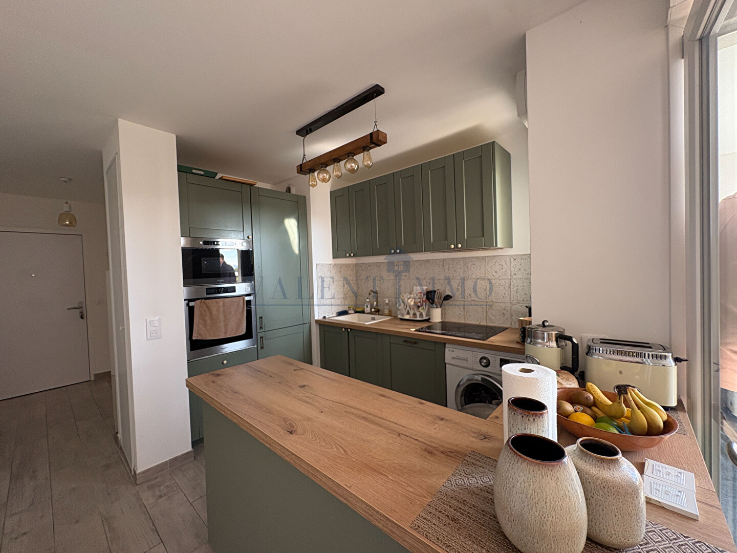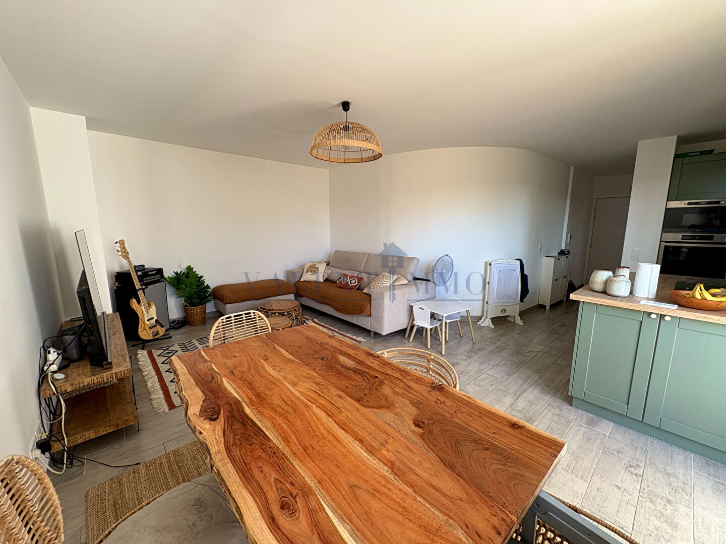 Une entrée spacieuse, un séjour vaste et lumineux de 33,42m2, une cuisine américaine, équipée et fonctionnelle, deux grandes chambres dont une avec accès balcon, une salle de bains, un WC séparés.