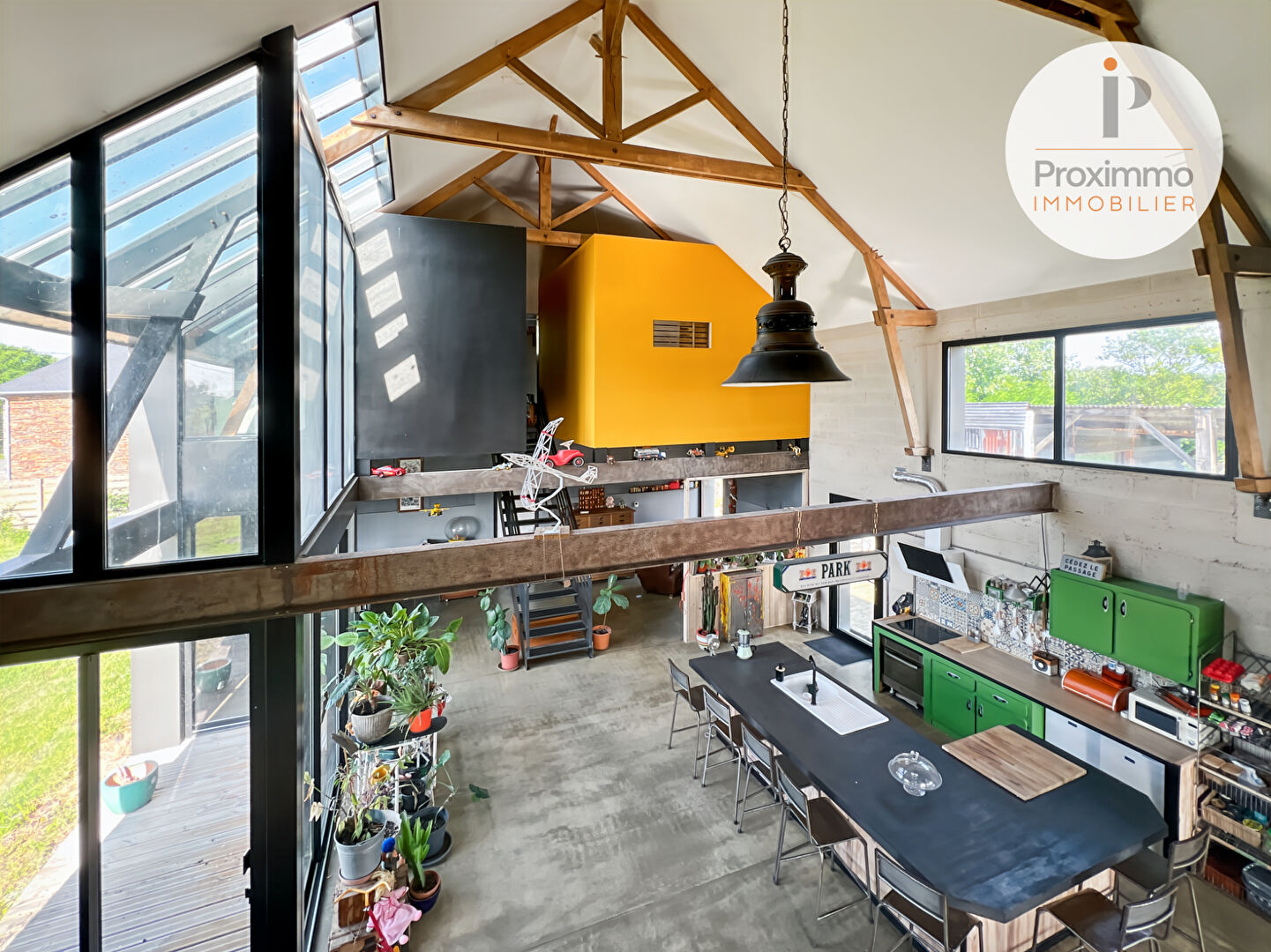 À seulement 4 minutes de l'axe Rennes/Nantes, au coeur d'un environnement paisible, cette ancienne grange du pays, entièrement repensée en 2015 par l'architecte Mickaël Tanguy, allie esprit industriel, volumes spectaculaires et élégance contemporaine.