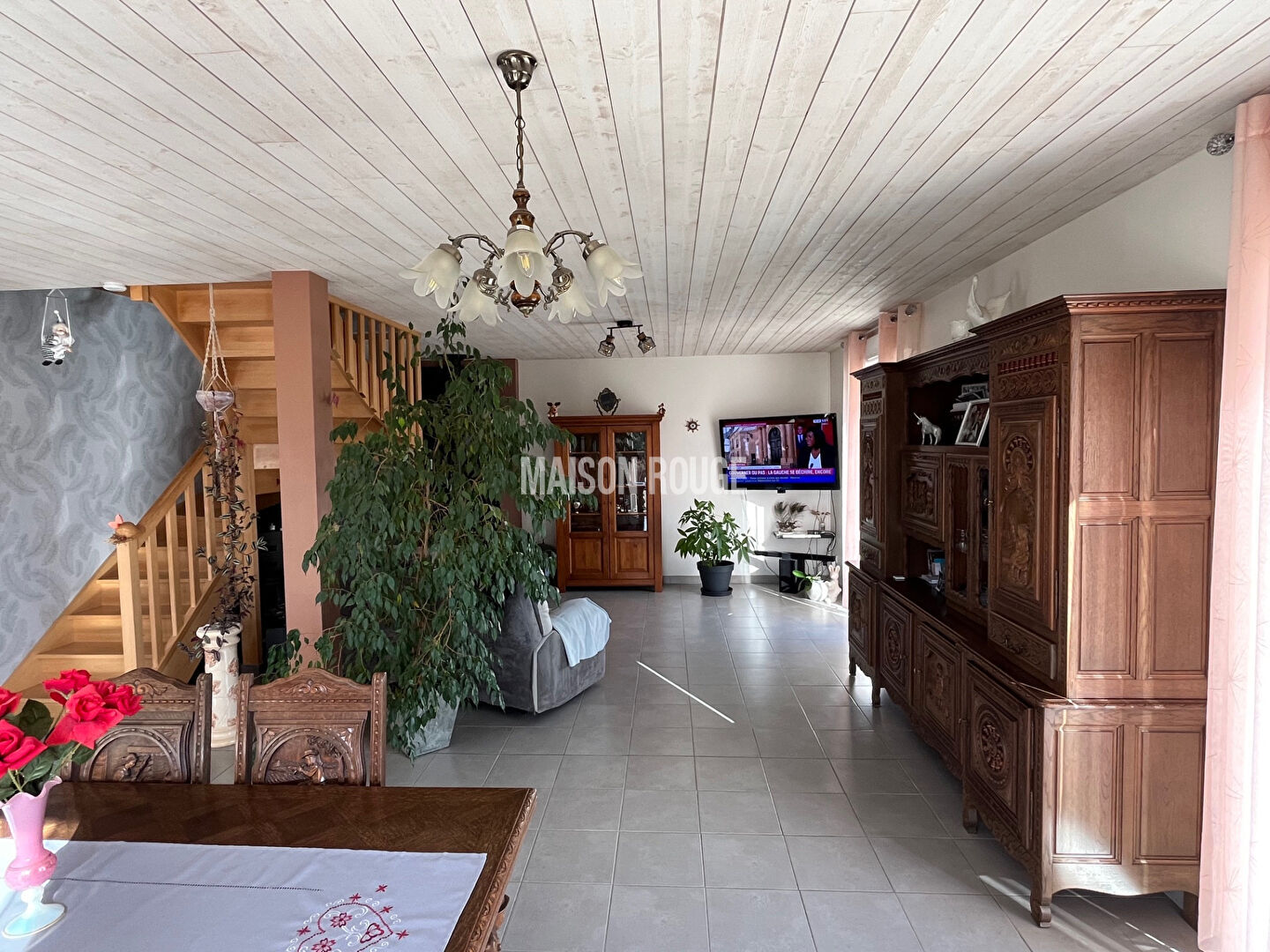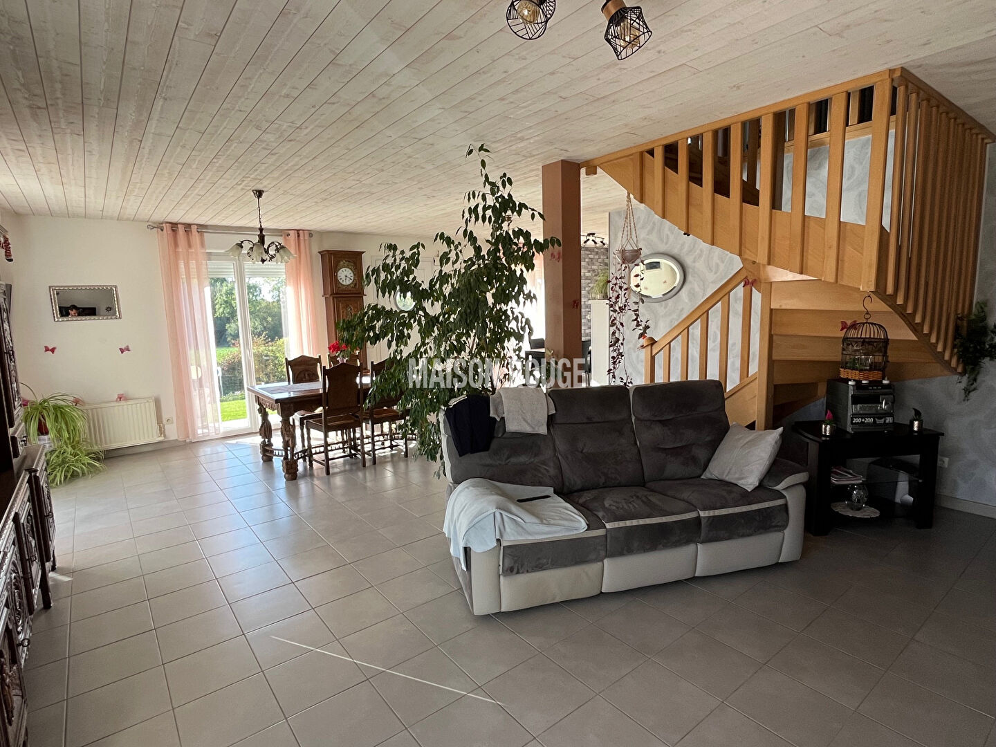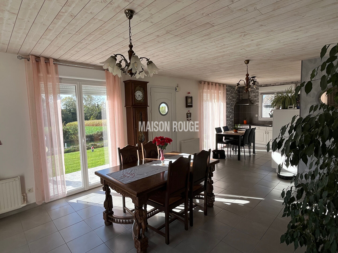 Maison Rouge vous propose à la vente cette maison construite en 2011 d'environ 128 m² habitables. Située non loin de la voie verte, elle vous offre au rez-de-chaussée : une entrée desservant un salon - salle à manger baigné de lumière avec poêle à bois, une cuisine dinatoire aménagée et équipée, une suite parentale avec salle d'eau et un WC séparé.