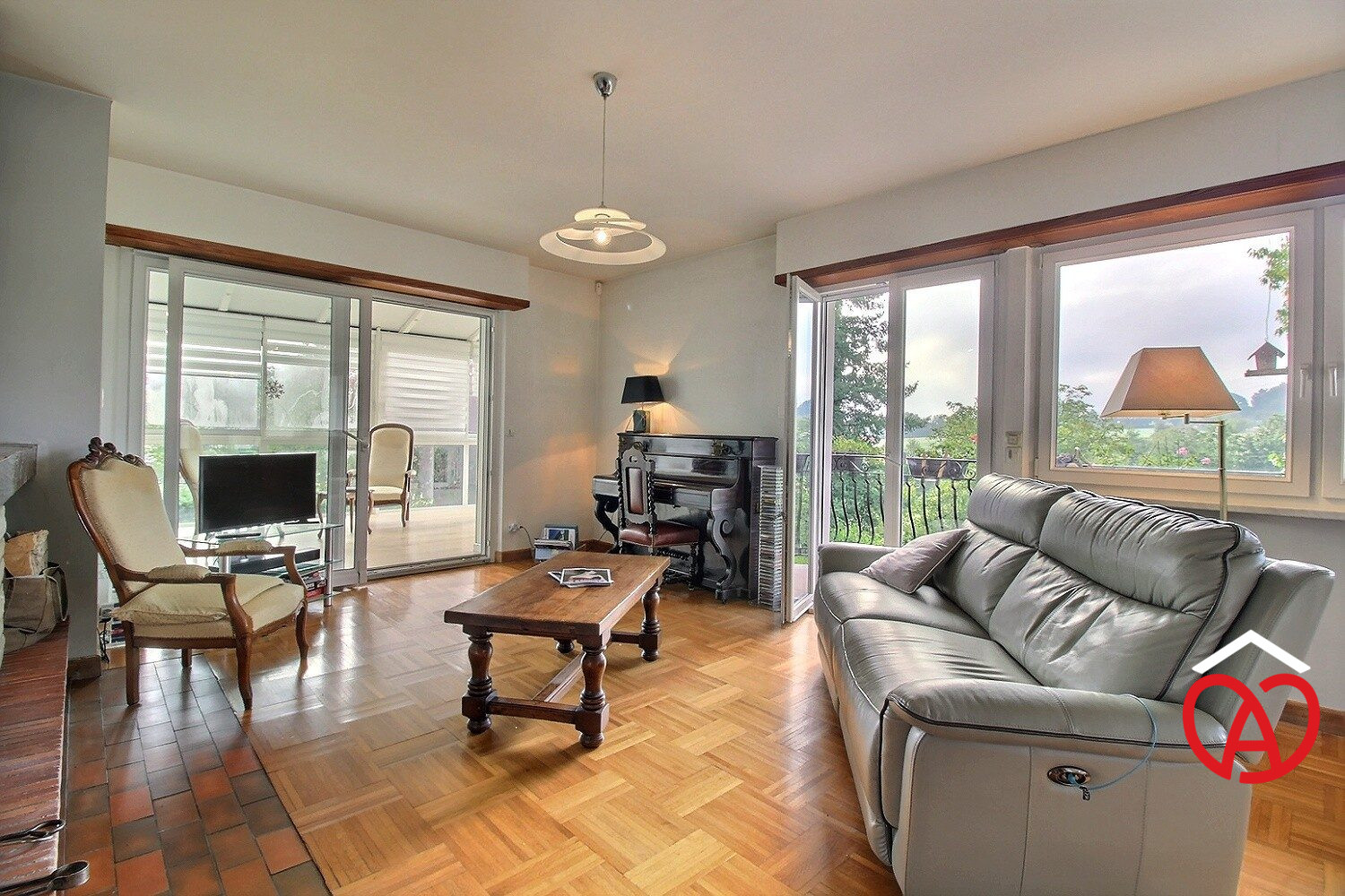 Un double séjour largement exposé sud avec cheminée et accès à la véranda elle même chauffée