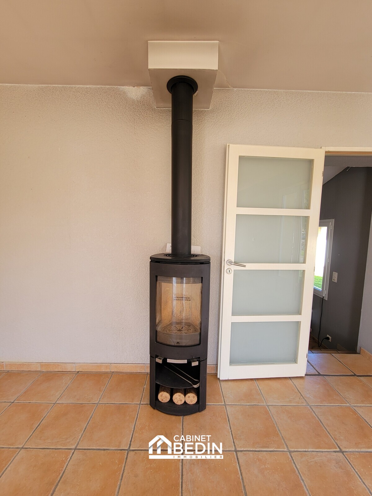 Séjour lumineux équipé d?un poêle à bois pour un confort chaleureux en hiver