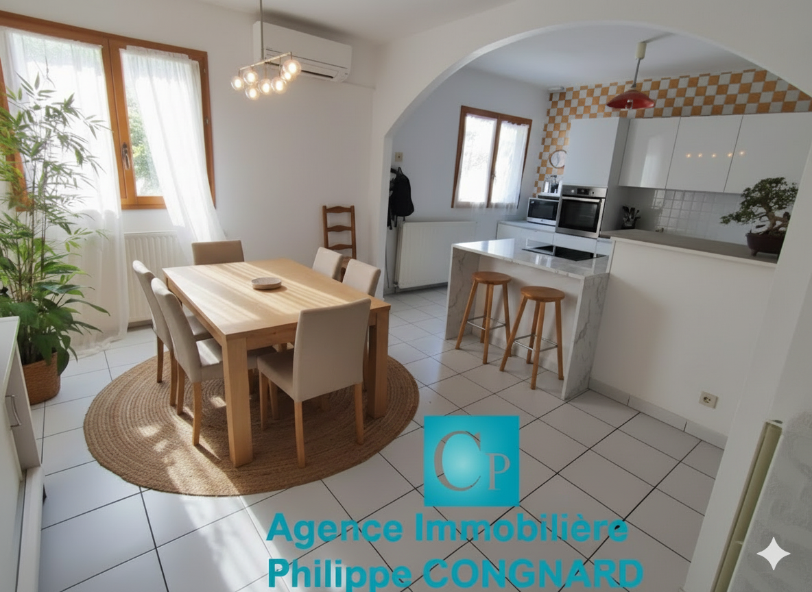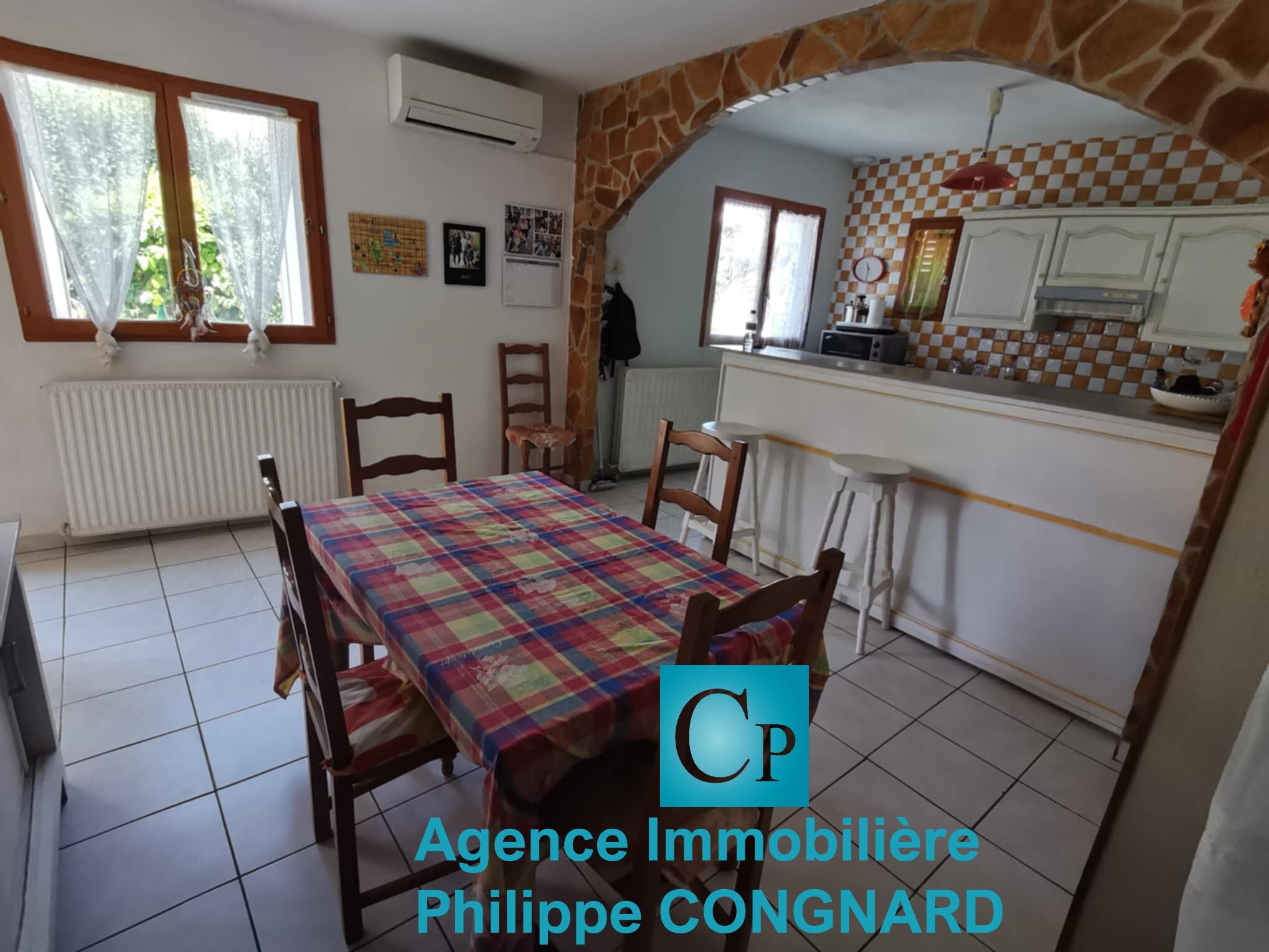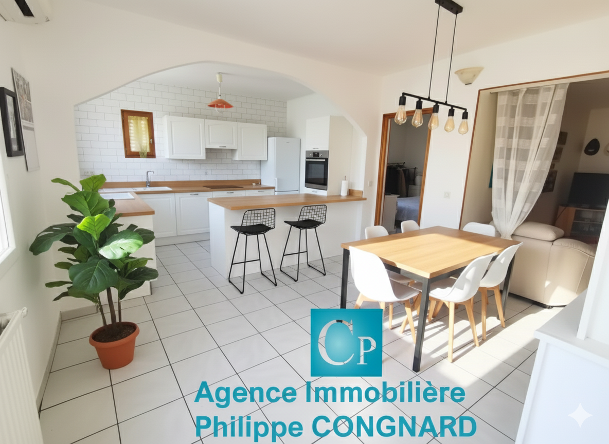 Découvrez cette maison T5 de 100 m² de superficie habitable sur une parcelle de 407 m², avec possibilité d'installer une piscine 3x5 m. Le rez-de-chaussée propose une salle à manger-cuisine conviviale, un salon TV, une véranda lumineuse, deux chambres, une salle de bains et des toilettes. À l'étage, deux chambres supplémentaires avec salle d'eau et toilettes. Chauffage au gaz citerne et climatisation dans le salon. Des dépendances complètent ce bien. Des travaux de rafraîchissement permettront de révéler tout son potentiel.