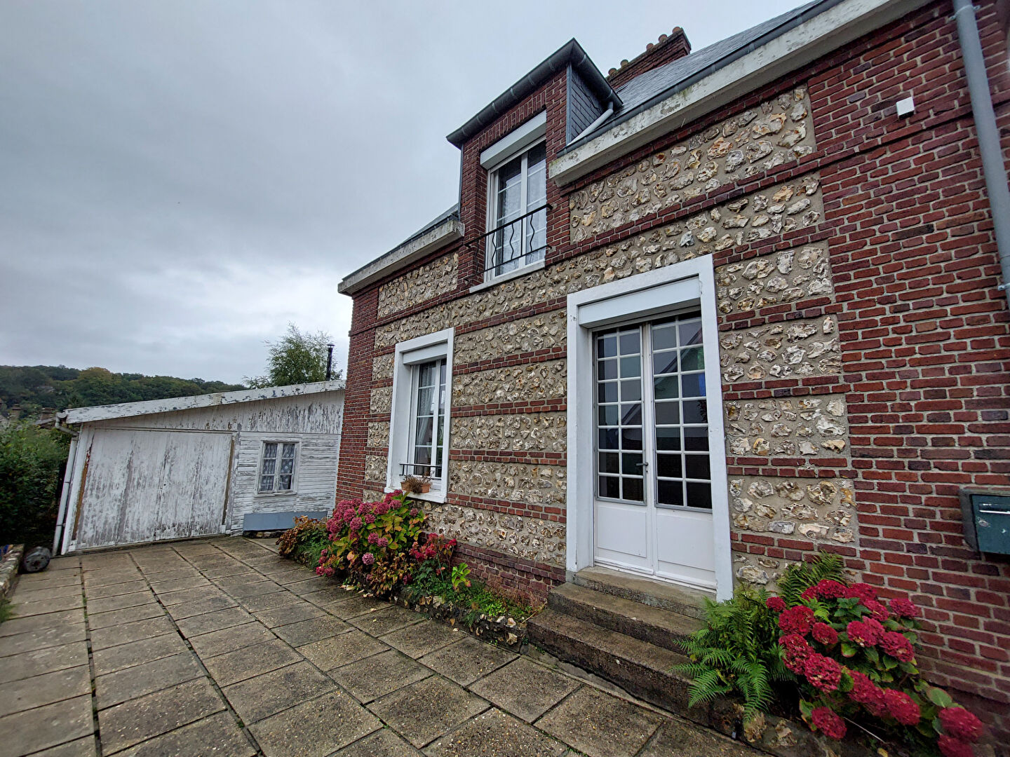 La maison en brique et silex se compose :