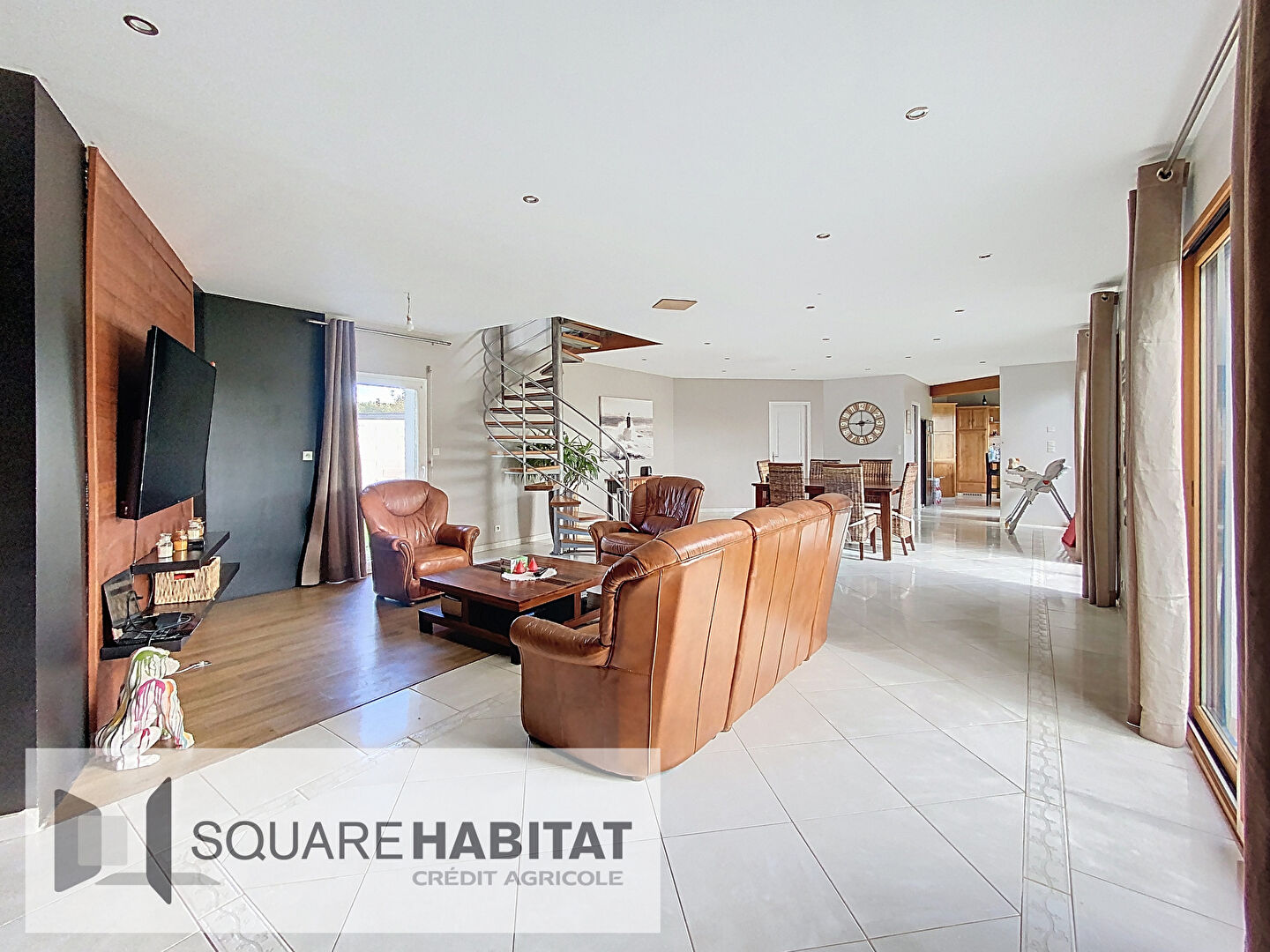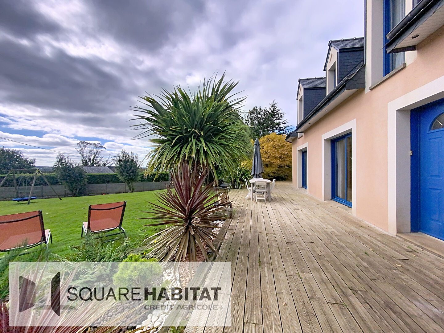 Proche du centre-ville de Louargat (22540) et disposant d'un accès rapide à la RN 12, Maison construite en 2002 comprenant : cuisine aménagée/équipée, arrière/cuisine communiquant avec un double garage (portes automatisées, salon/séjour donnant sur une terrasse en bois exposée plein sud, salle de jeux, une chambre parentale avec dressing et salle de bains, wc. A l'étage : grand palier desservant : 4 chambres dont 1 avec dressing privatif, un bureau, wc, salle de bains, autre dressing. Cour et jardin aménagés sur une parcelle de 2930 m2 disposant d'un car-port en plus des garages. Chauffage par pompe à chaleur et Ballon d'eau chaude thermodynamique fonctionnant avec des panneaux solaires. Assainissement par fosse toutes eaux NC