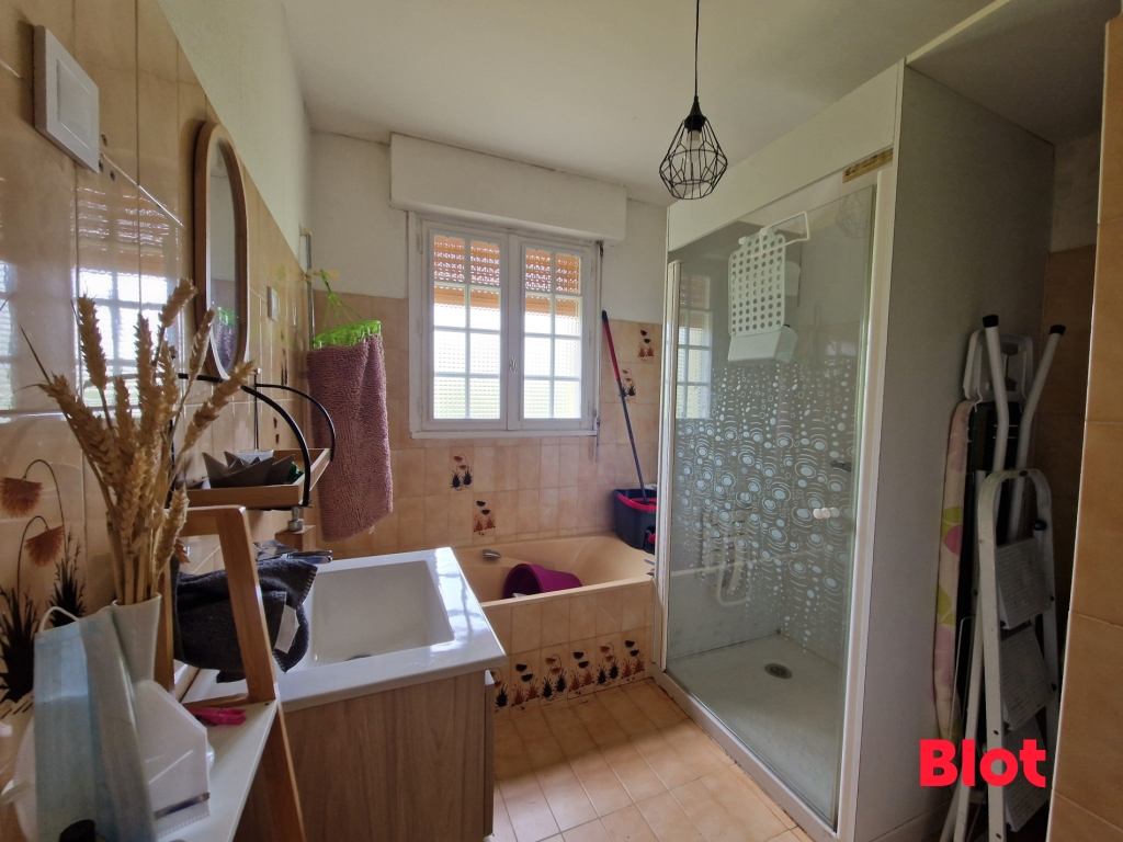 - Au rez-de-chaussée, la maison vous offre un hall d'entée, un salon-séjour avec cheminée, une cuisine aménagée et équipée, une chambre avec placard, salle de bains et WC.