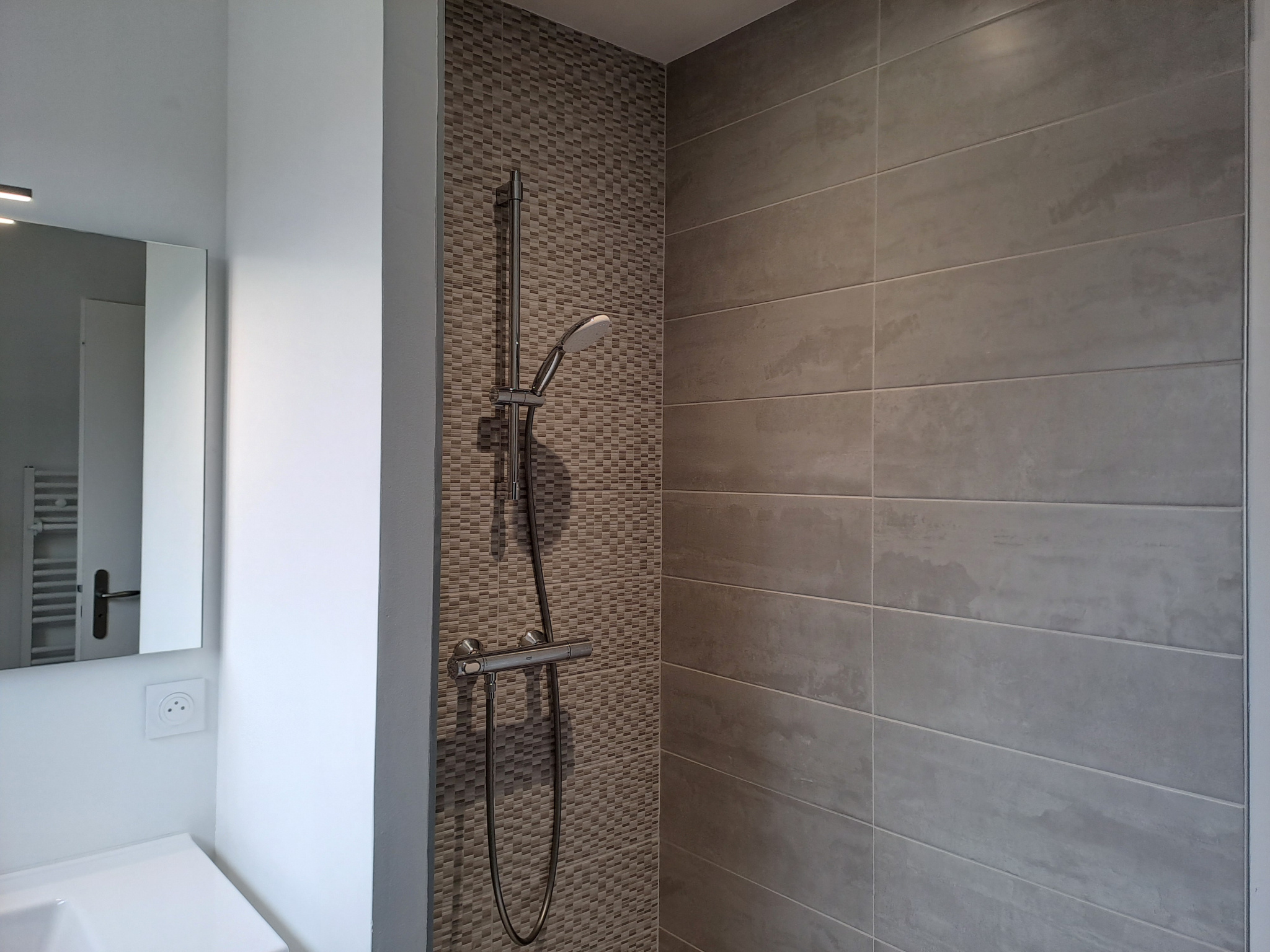 Cette maison comprend ; un espace de vie ouvrant sur une terrasse en bois et un jardin privatif, une chambre avec salle d'eau, ainsi qu'un wc indépendant, un escalier menant à une seconde chambre avec dressing, salle d'eau et WC.