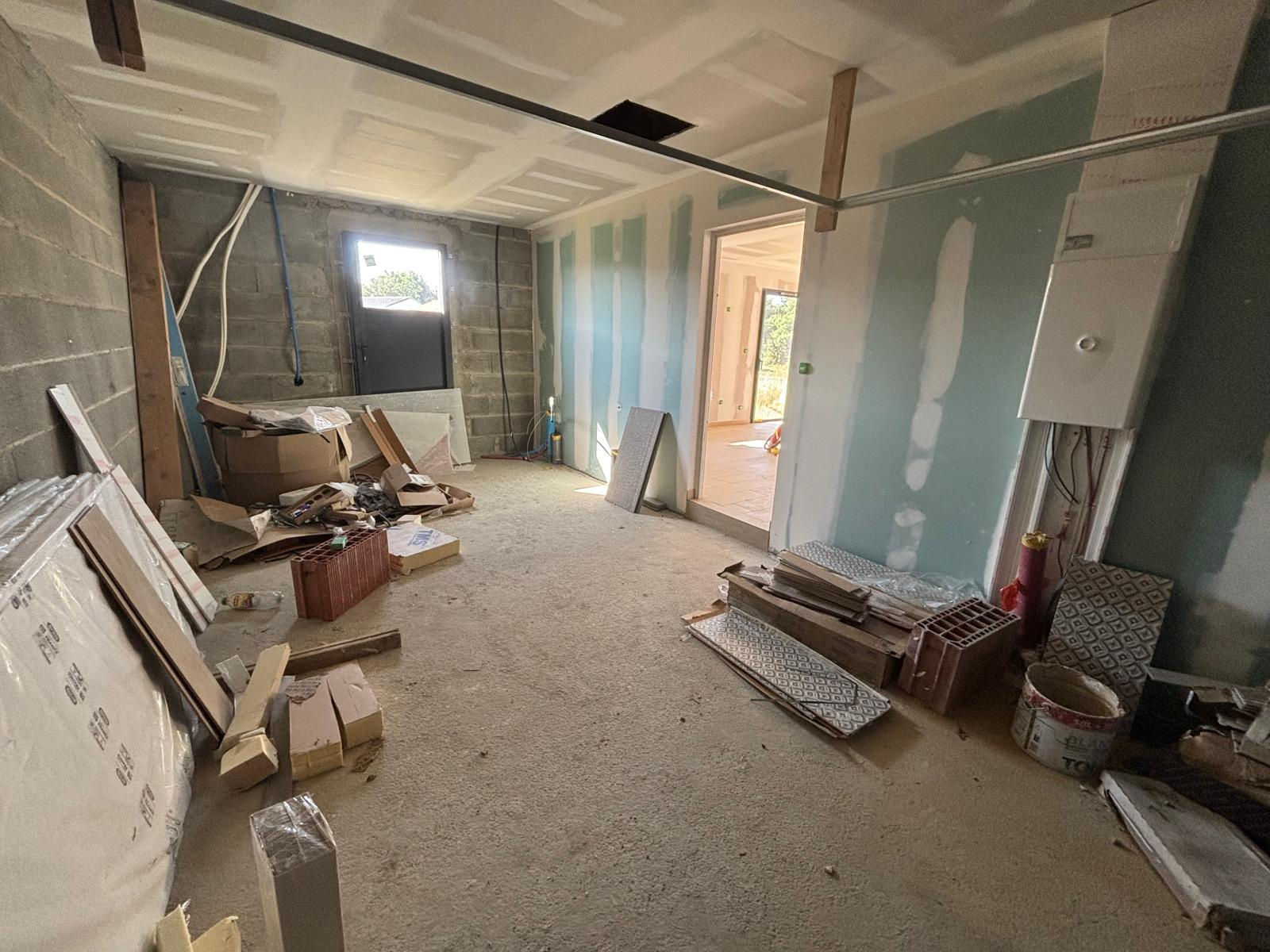 Les principaux travaux ont déjà été réalisés. Il restera à prévoir la pose des sols dans les chambres, la finalisation des peintures, l'installation des sanitaires, du ballon d'eau chaude et de la pompe à chaleur, le raccordement de la VMC et du tableau électrique, ainsi que l'isolation des combles.