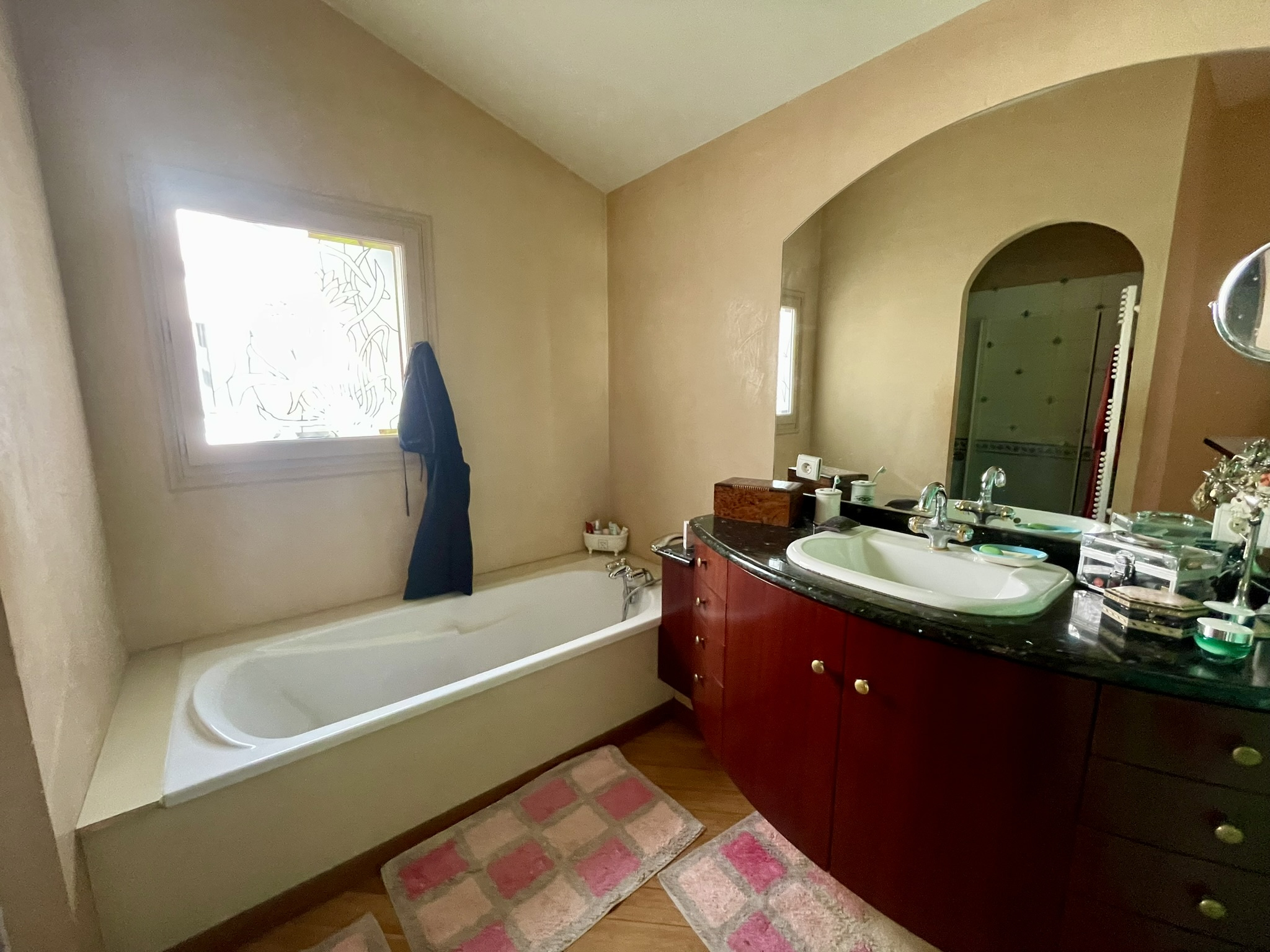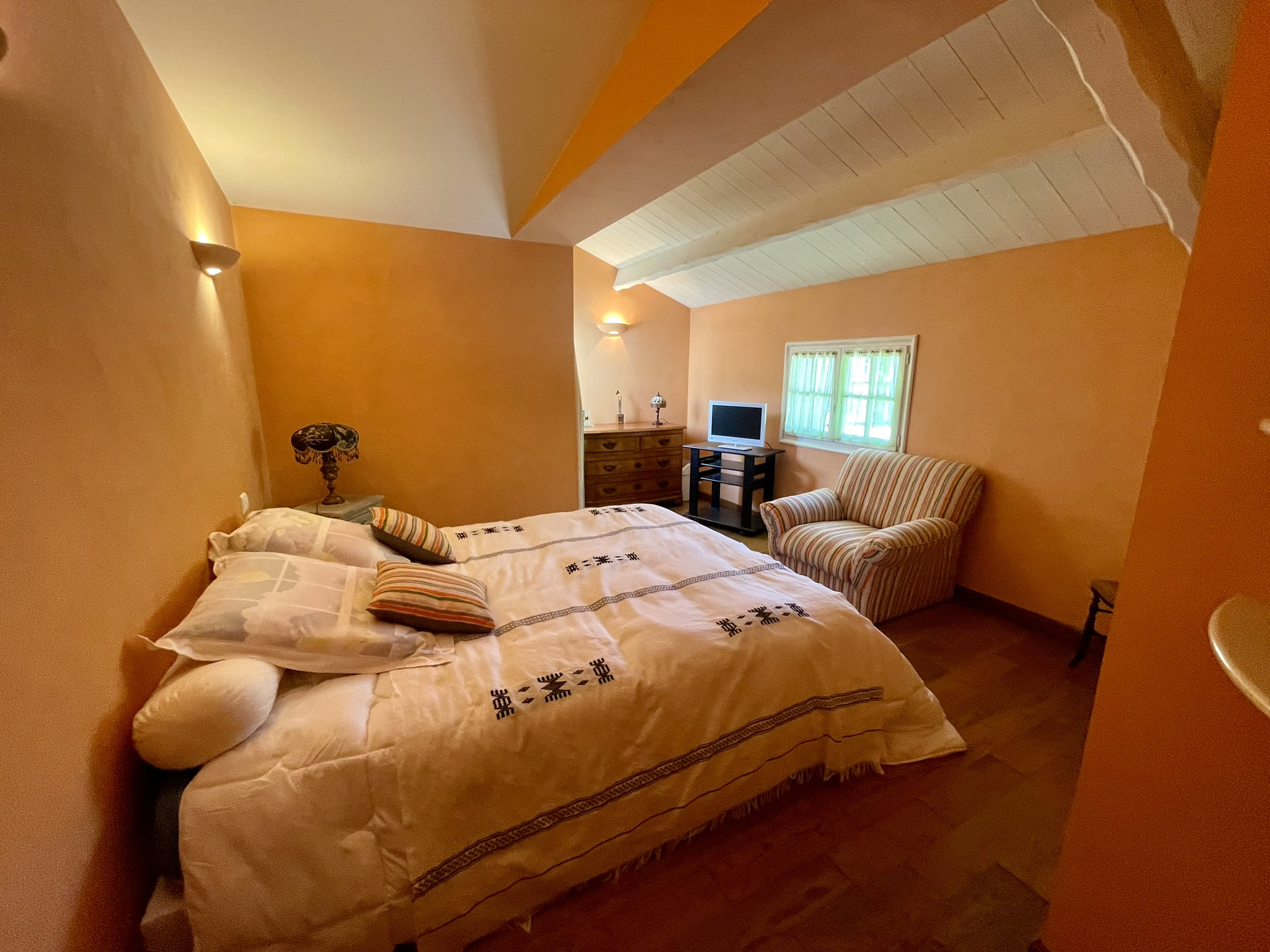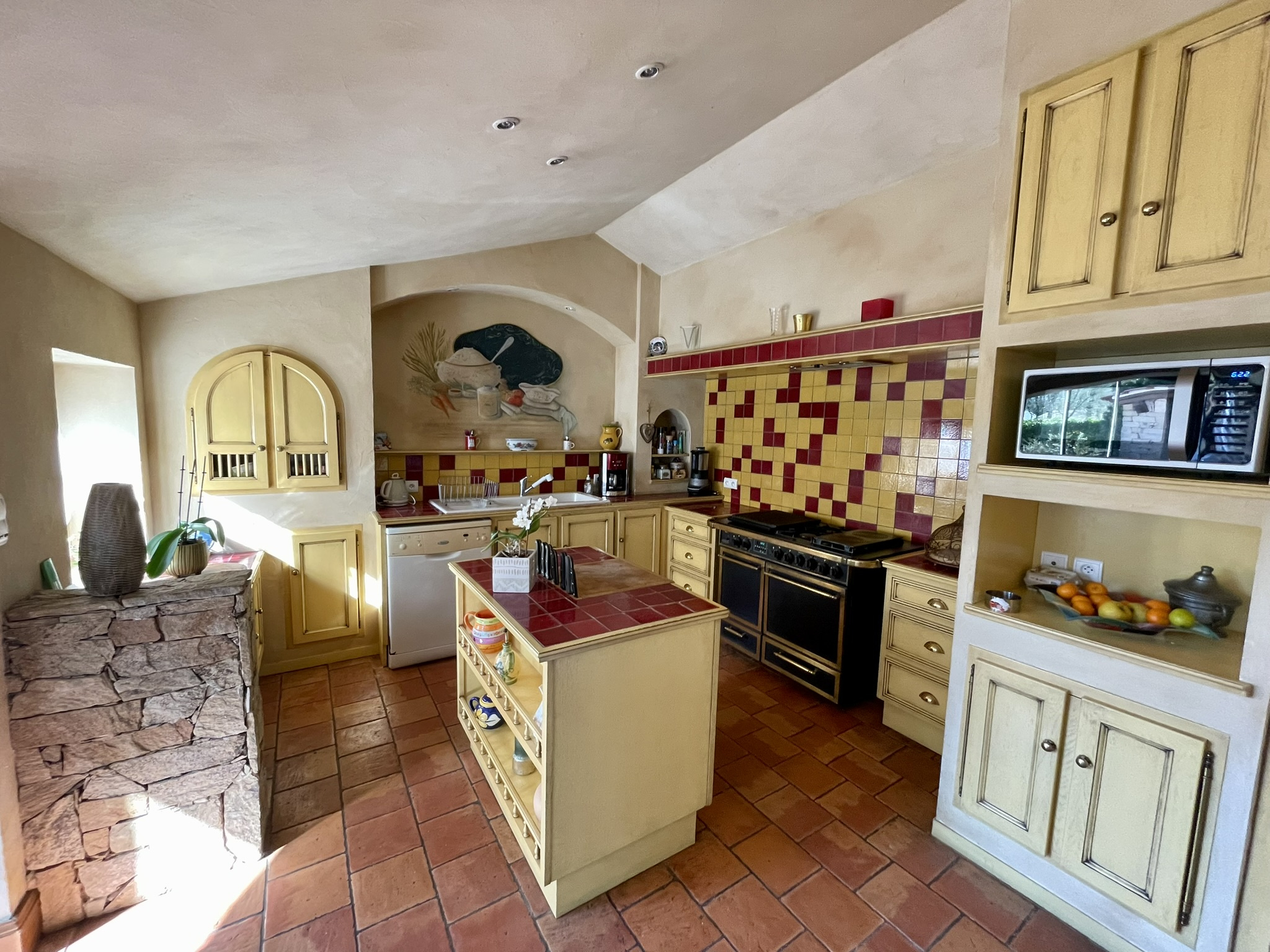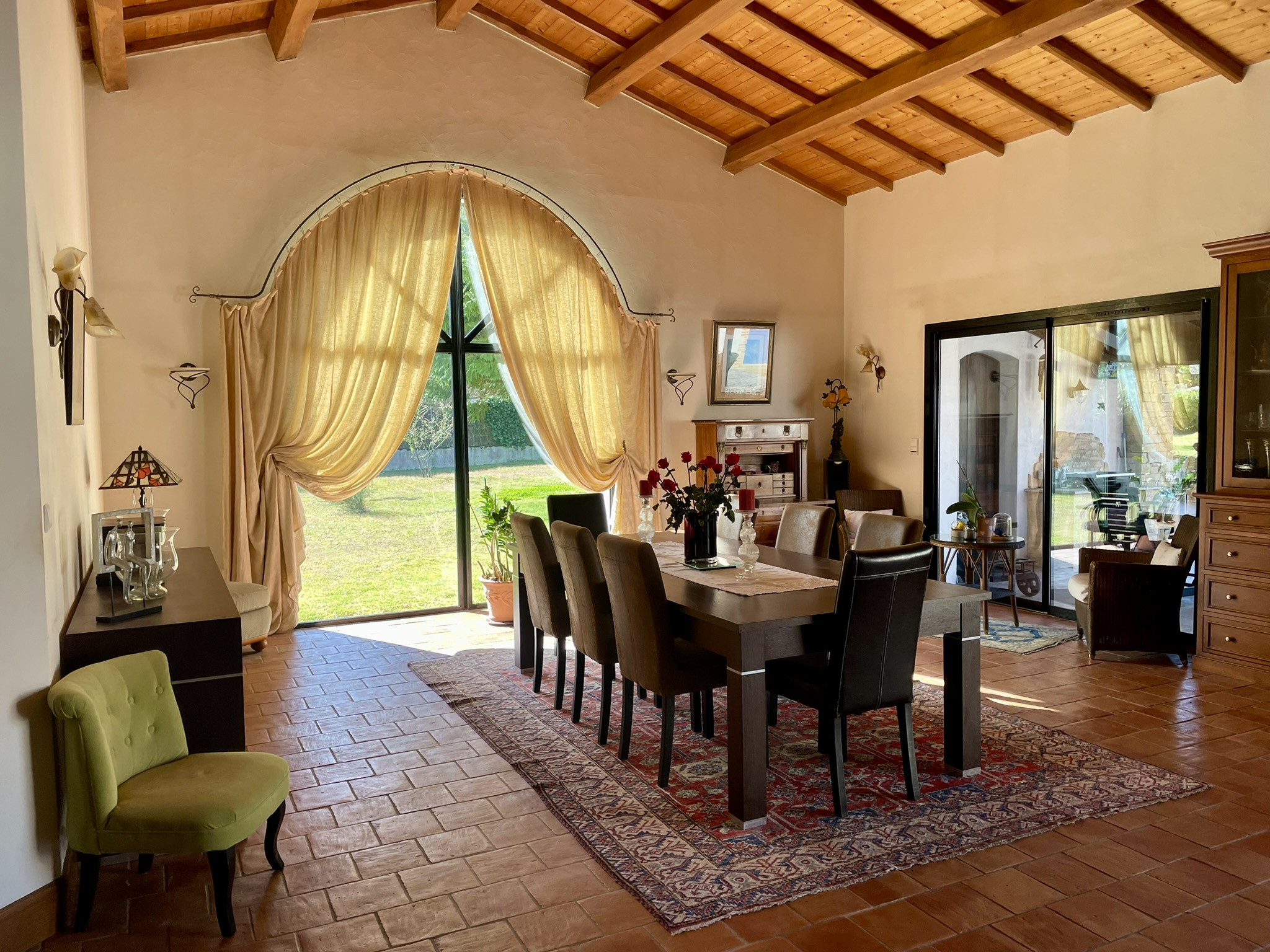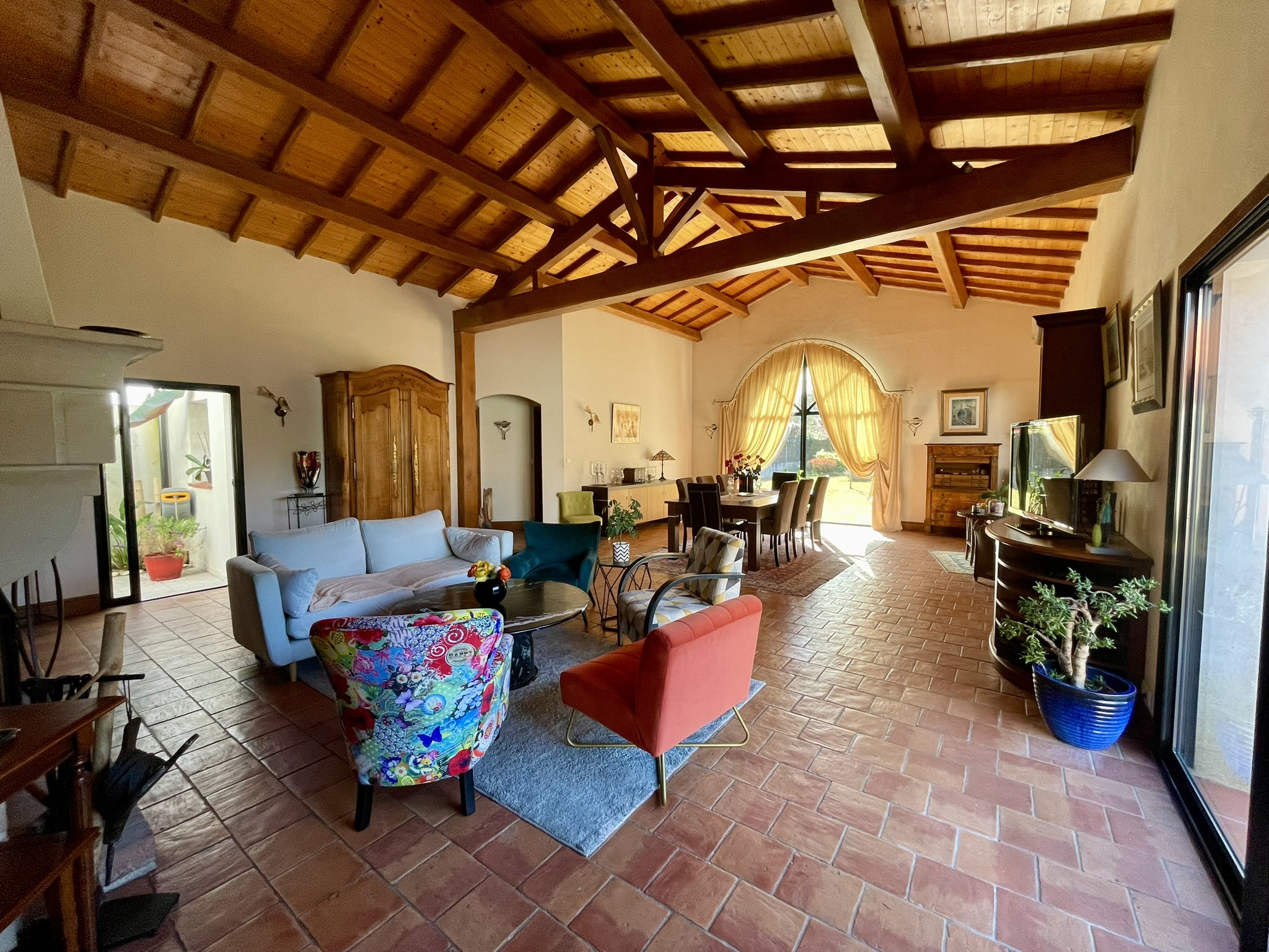 Découvrez cette magnifique villa de 234 m2 entièrement rénovée en 2003, alliant charme authentique et confort moderne située sur un terrain de 2089 m2 exposé plein sud. Elle offre un séjour lumineux de 66 m2 avec cheminée, une cuisine provençale spacieuse de 27 m2, quatre chambres et une mezzanine de 50 m2. Son plafond cathédrale avec poutres traditionnelles apporte un cachet unique. Une cave vient compléter les espaces de stockage.