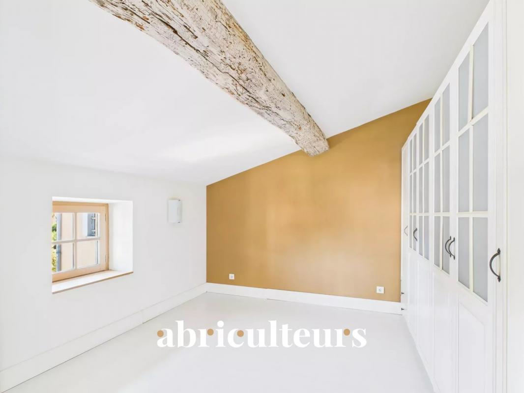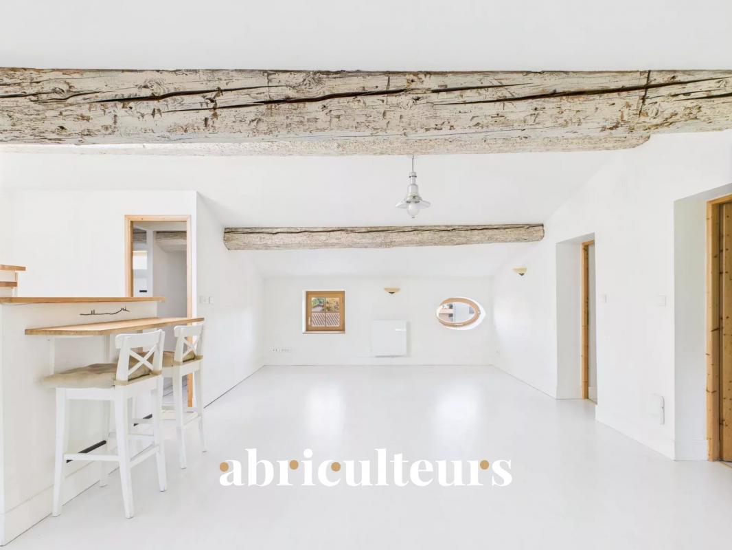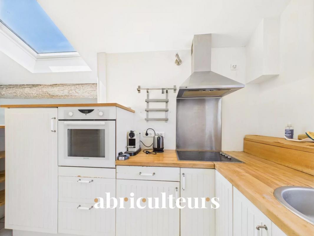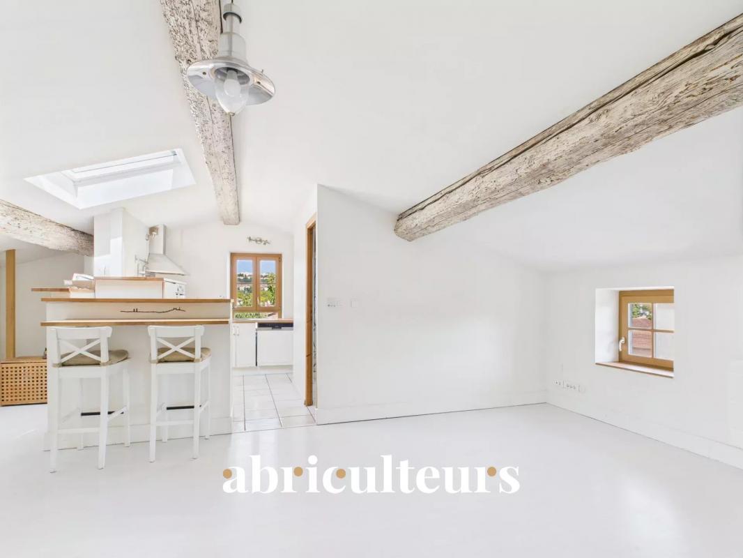 L'appartement s'ouvre sur la pièce de vie; une cuisine équipée et ouverte sur le salon de 35m², lumineux grâce à ses vélux. Cette pièce dessert également deux belles chambres avec placards et une salle d'eau lumineuse avec wc séparés. Cet appartement mansardé garde son charme d'époque grâce à la conservation des poutres apparentes tout en alliant la modernité de ses équipements.