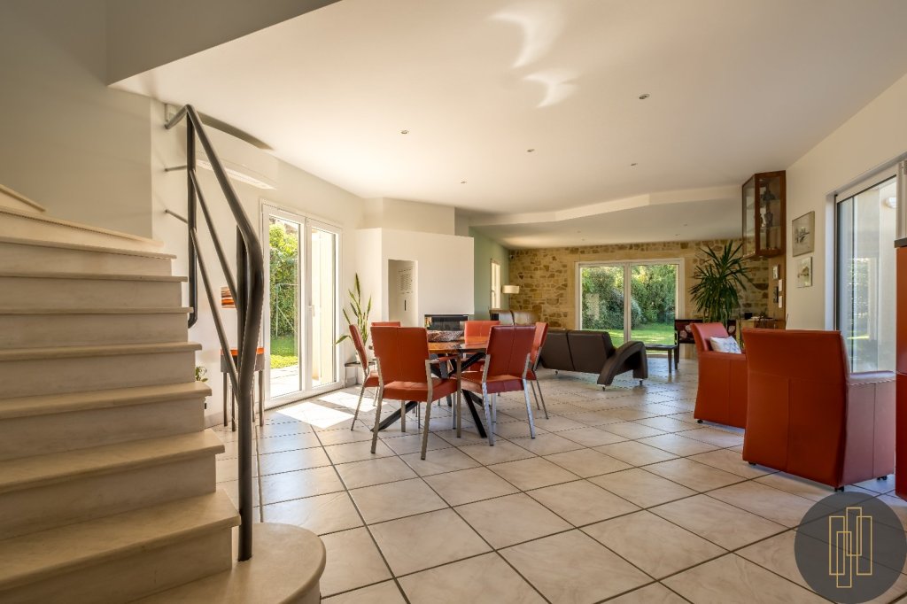La maison allie confort moderne et performance énergétique grâce à ses équipements de qualité : chauffage au sol par géothermie, panneaux photovoltaïques, climatisation réversible et deux poêles à granulés. L'installation domotique, les volets électriques, l'aspiration centralisée, l'alarme et la vidéosurveillance assurent un haut niveau de confort et de sécurité. La connexion fibre, offrant un débit supérieur à 1 Gbit/s, facilite le télétravail et tous les usages connectés.