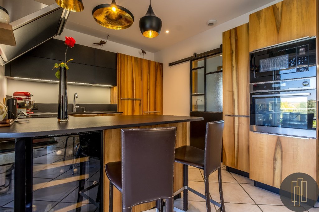 Les pièces de vie, vastes et lumineuses, s'étendent sur près de 90 m². La cuisine ouverte sur le séjour s'ouvre sur l'extérieur, offrant un accès direct au jardin et une immersion constante dans les paysages environnants.