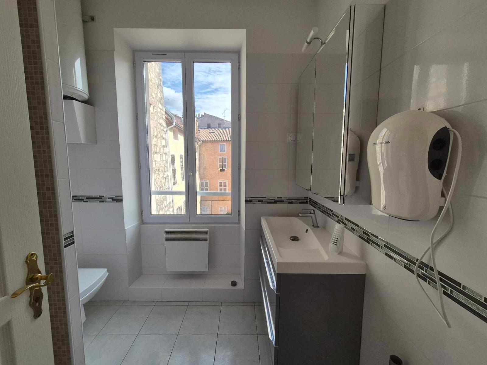 Draguignan F2 rénové 41 m² . Baisse de prix ! - centre ville - centre ville - Baisse de prix ! Draguignan F2 rénové et très lumineux de 40.50 m² LC au 3eme étage sans ascenseur. avec vue sur placette Il est composé d'une entrée, d' une cuisine équipée indépendante de 9m², d'un salon avec placard + coin bureau et d'une petite chambre indépendante, d'une salle d'eau avec wc. En parfait état !. Le bien est soumis au statut de la copropriété , la copropriété comporte 9 lots , la quote-part budget prévisionnel (dépenses courantes) est de 1 116,00 euros/an.